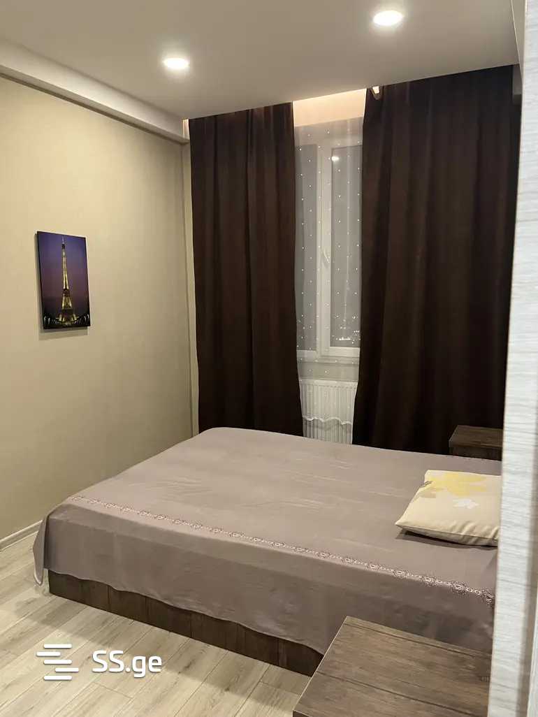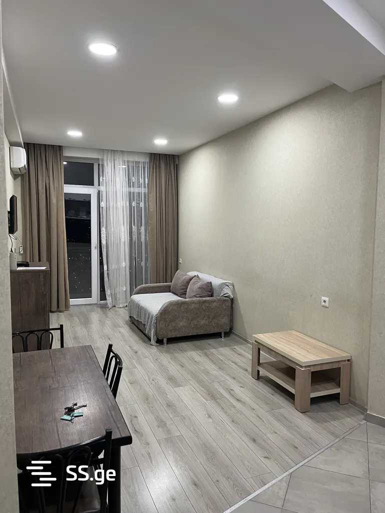 Комментарий: For rent is a 55 square meter, 2-room apartment with 1 bedroom in a newly constructed building with new renovation in Vazisubani, next to the old cable car. The apartment is furnished with all kinds of furniture and appliances. It has central heating and air conditioning. The price is 1000 Lari.