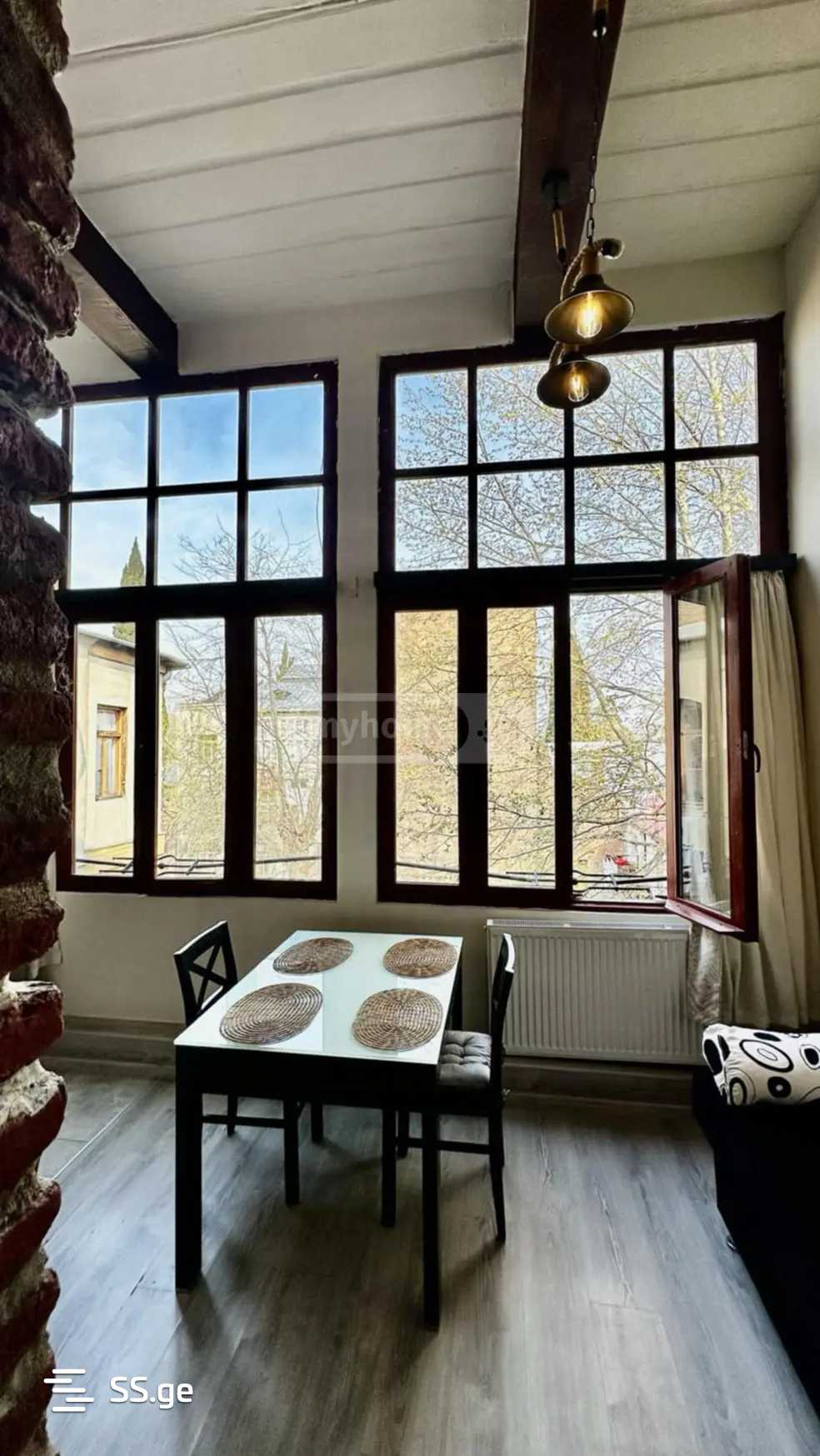 Арендуйте уютную квартиру типа студии в Сололаки, на улице Иашвили. Он новый отремонтирован со всей необходимой мебелью и прибором, красивыми видами, подлинными кирпичными элементами, оригинальной ванной комнатой, красивой улицей.
