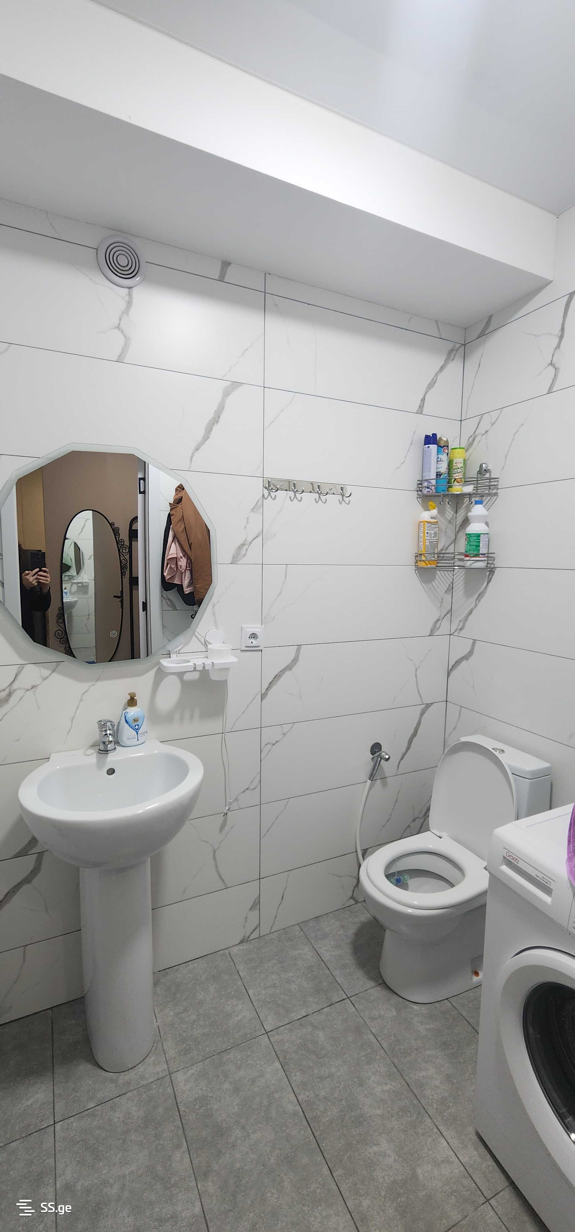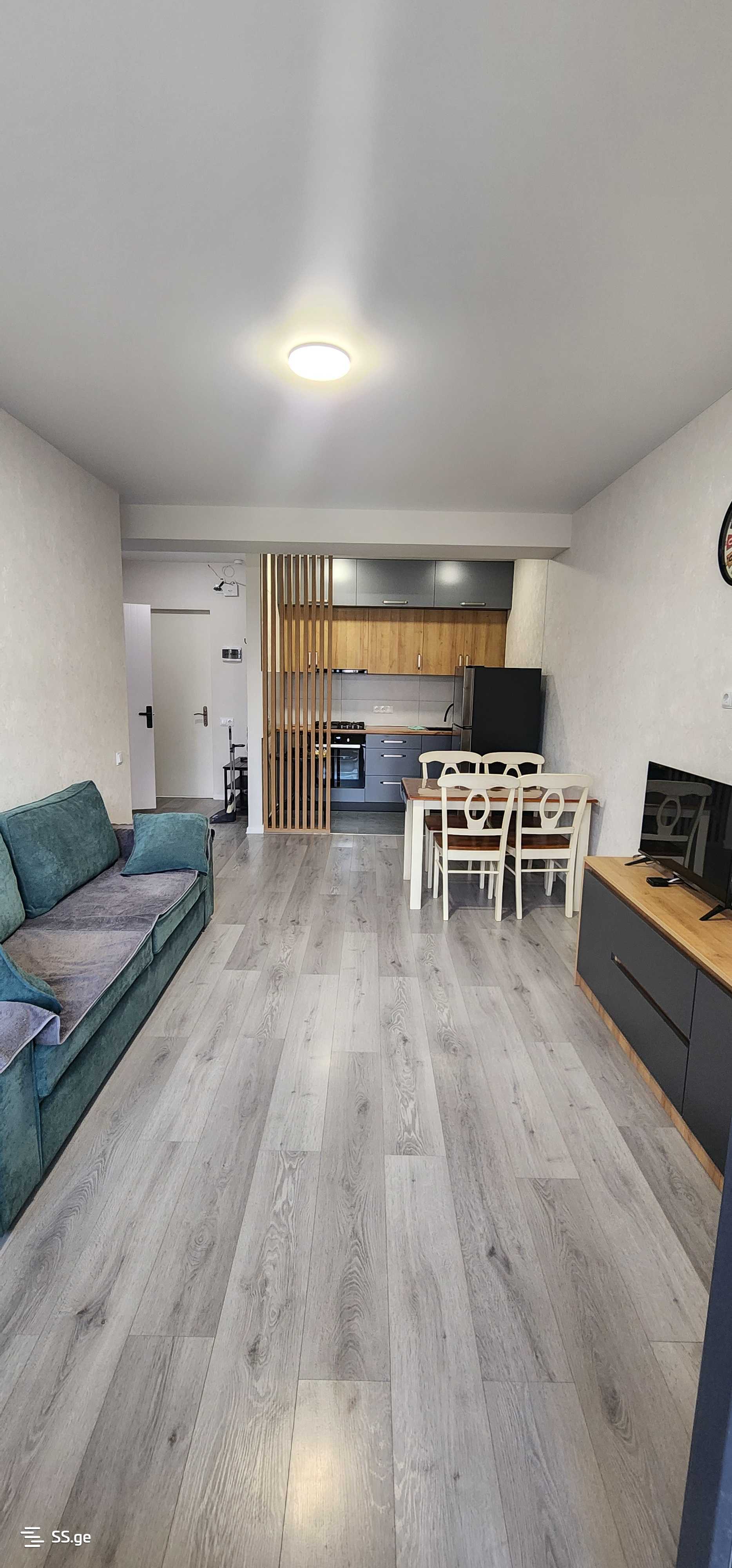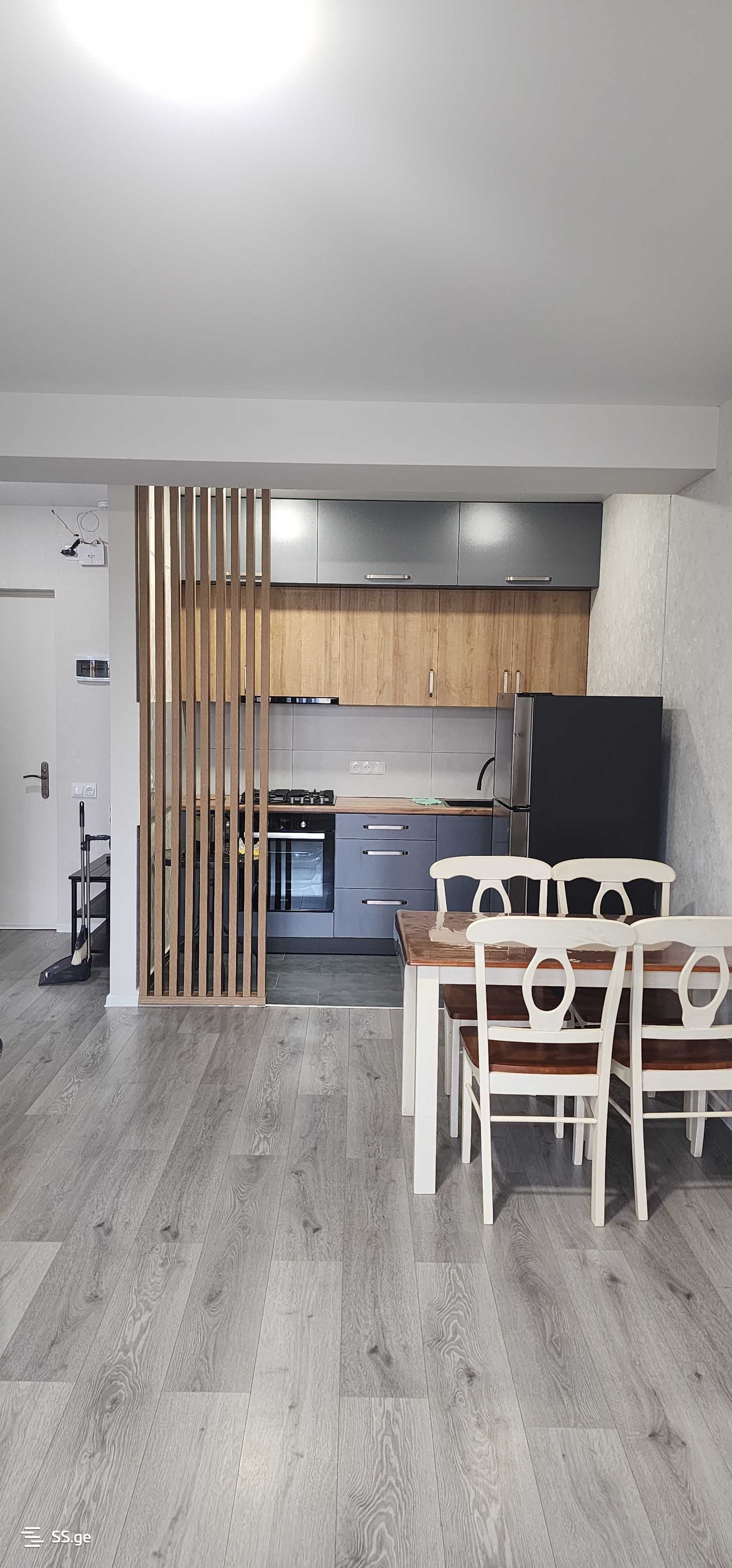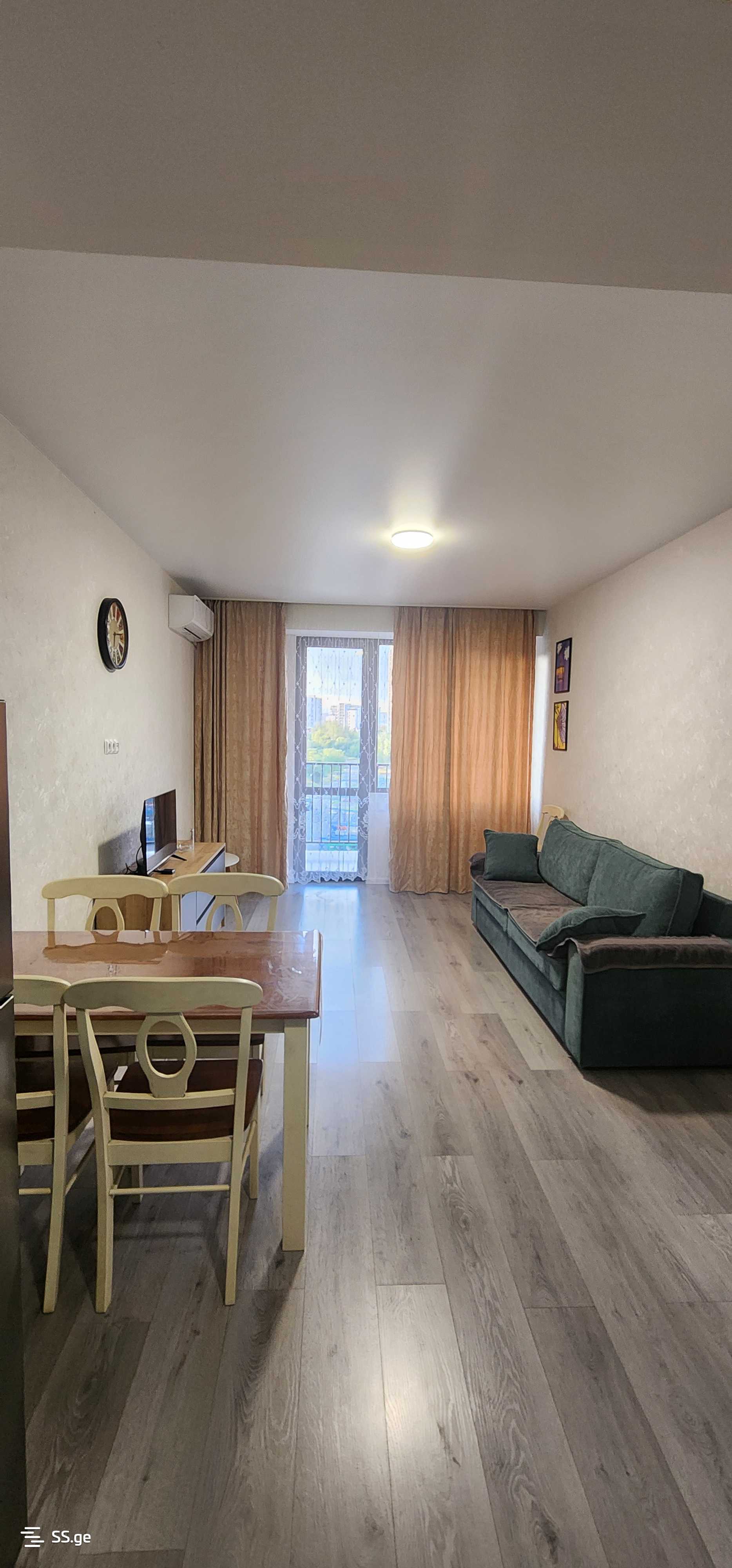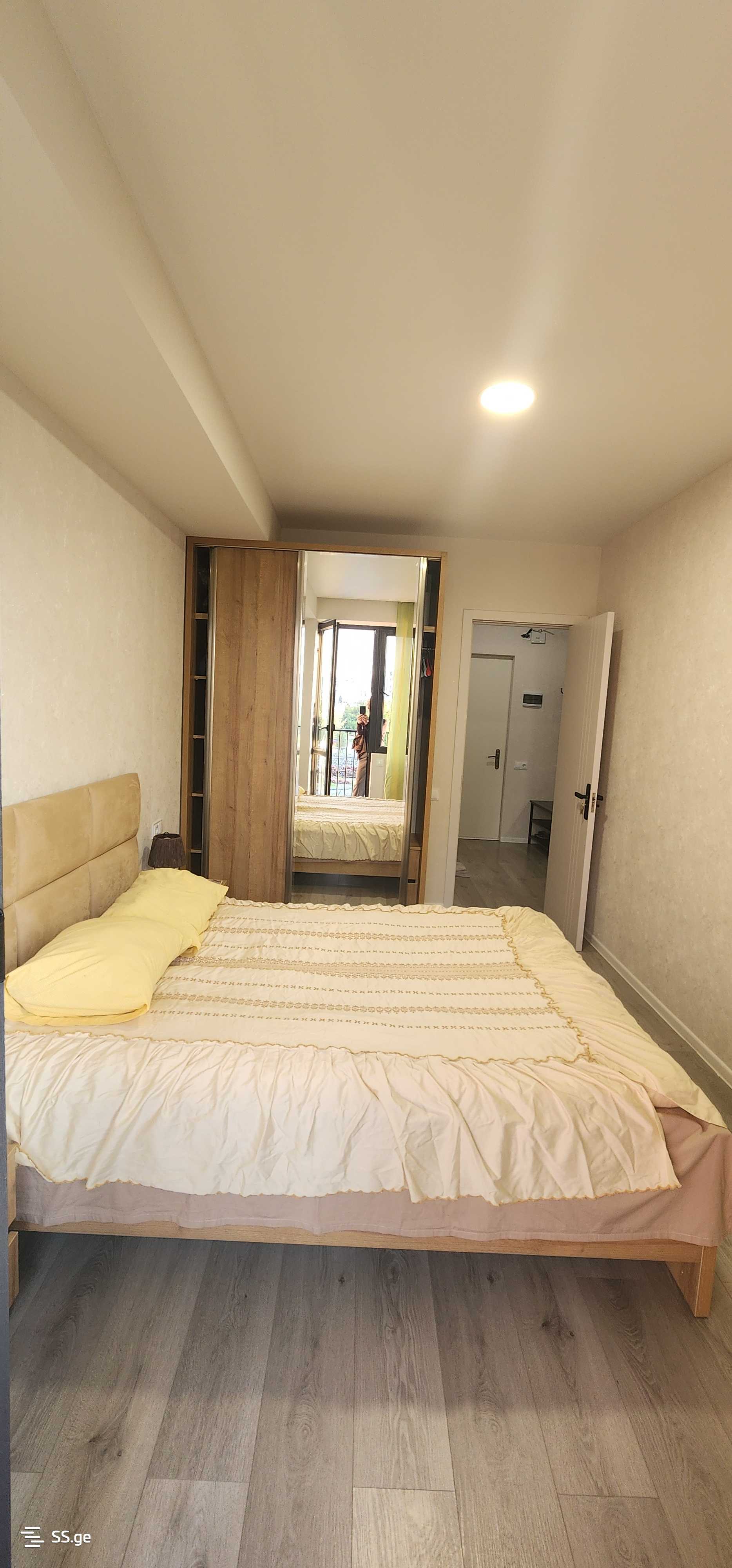 Комментарий: For rent: 2-room renovated apartment with furniture and appliances in a newly built building in Nazaladevi, in front of Gotsiridze metro station. The building is secured, the entrance is with a chip, and there are cameras installed in the lobby.