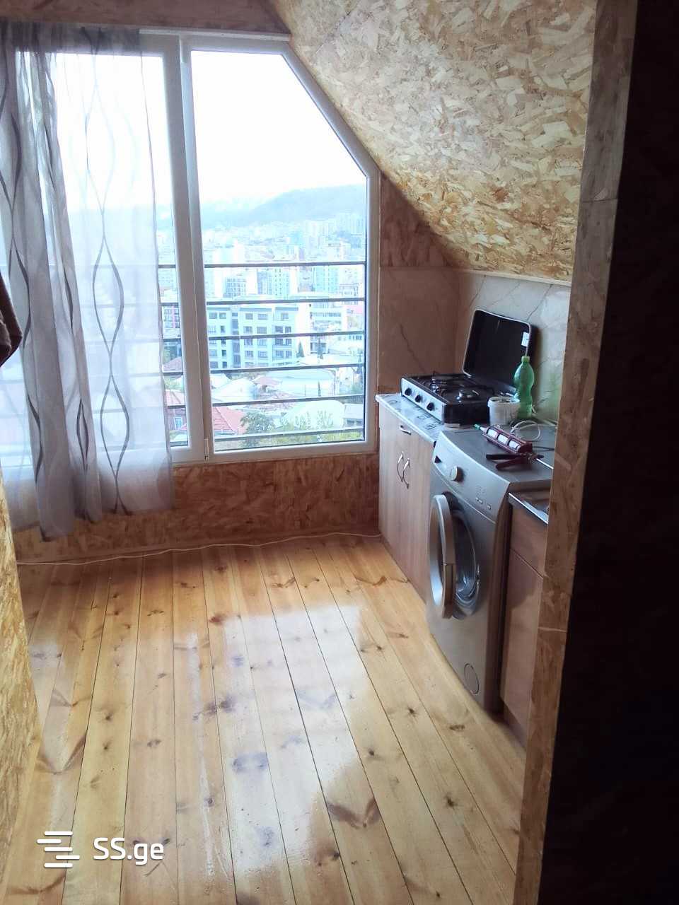Комментарий: For rent in Saburtalo a 55 sq.m. mansard type 2-room renovated apartment on the 4th (top) floor of a private house. Bar-studio, separate kitchen, bathroom and balcony with beautiful views. Shared yard - garden with the 3rd floor, separate entrance and normal ceiling height. Price 1250 Lari. Address: end of Tashkent Street. Phone: 599949342