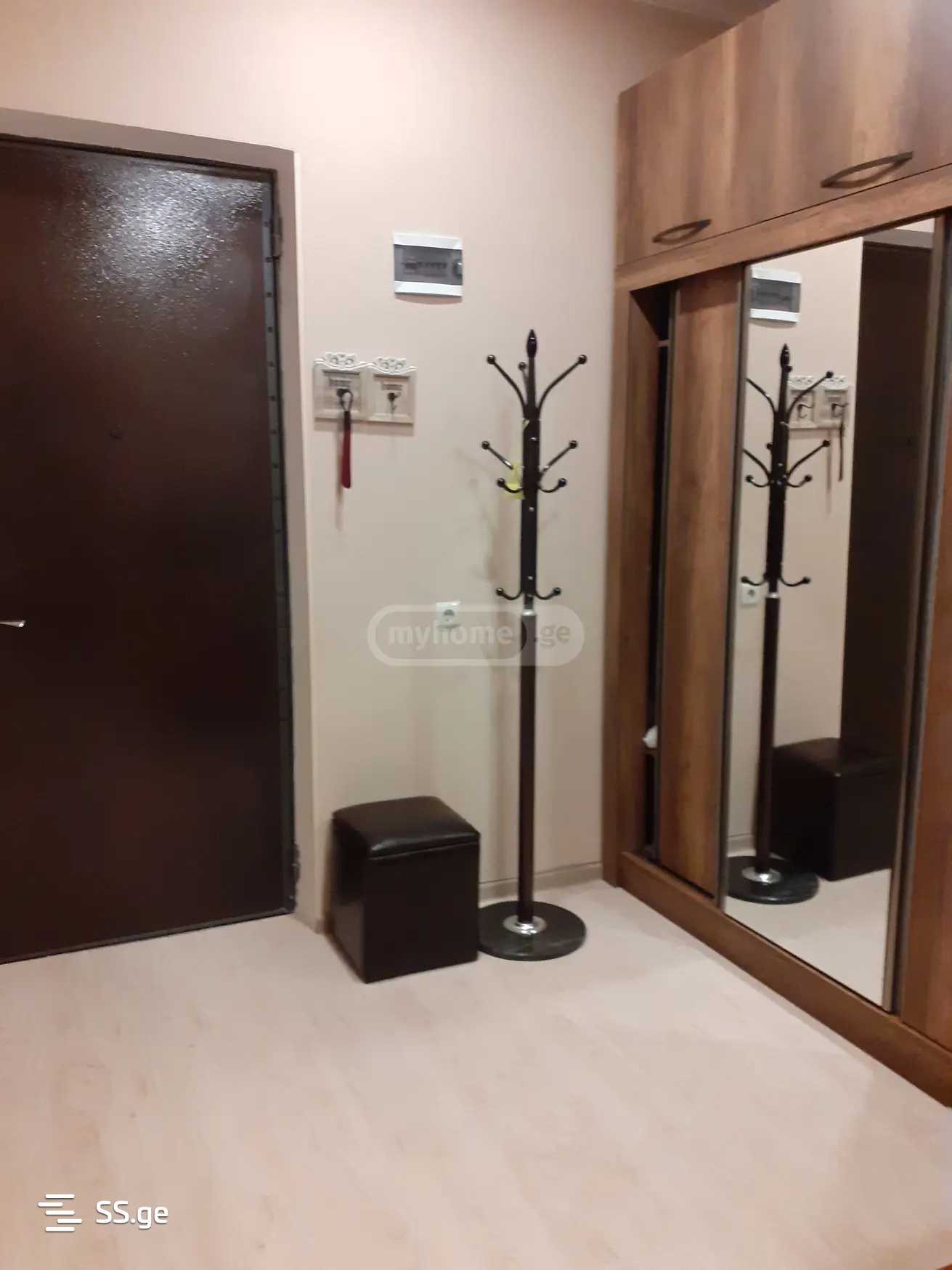 Комментарий: For rent near Guramishvili metro, 70 sq.m. apartment with two bedrooms, central heating, air conditioning, kitchen and bathroom equipped with appliances and all necessary furniture. The entrance is locked and secured.