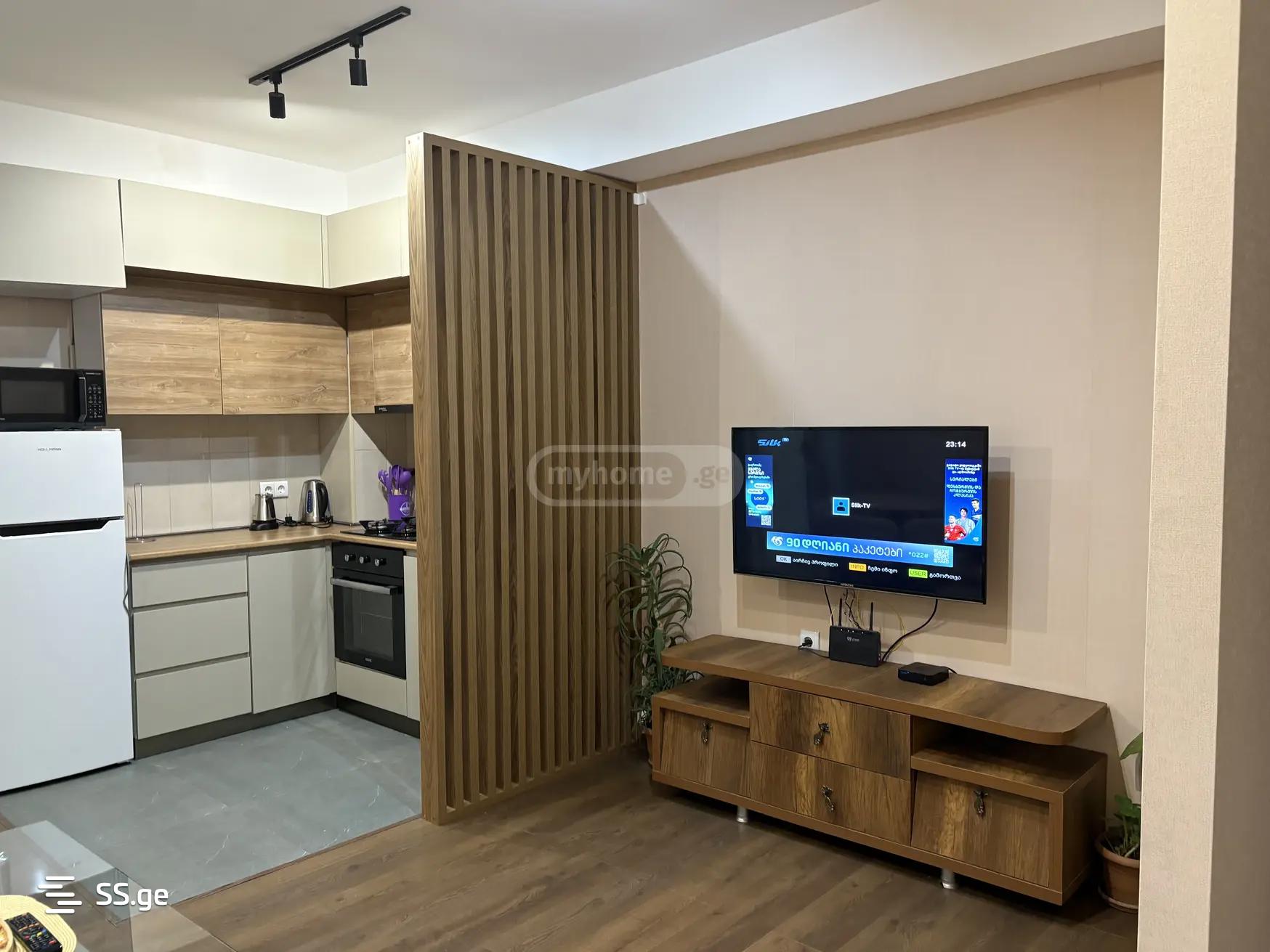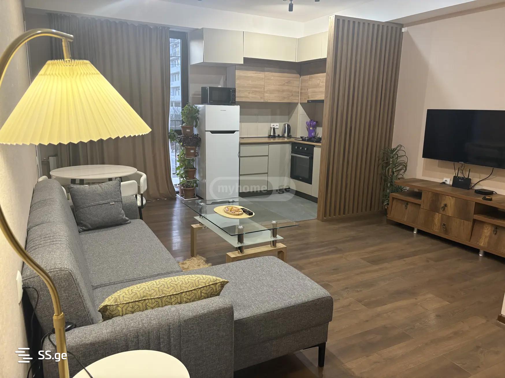 Аренда 56,40 м² квартиры на улице Александри Амилахвари (недалеко от Кейн -стрит). Новый встроенный, современный дизайн. Квартира имеет удобную планировку и солнечно.