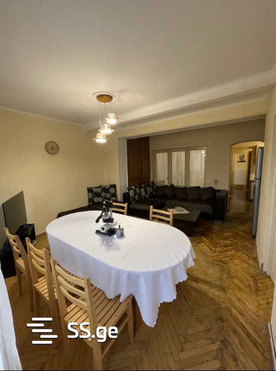 Комментарий: A four-room apartment is for rent in the Dighomi massif with a 2-month advance payment. The apartment is bright and newly renovated, with two balconies, central heating, all kinds of furniture, a TV, and the internet.