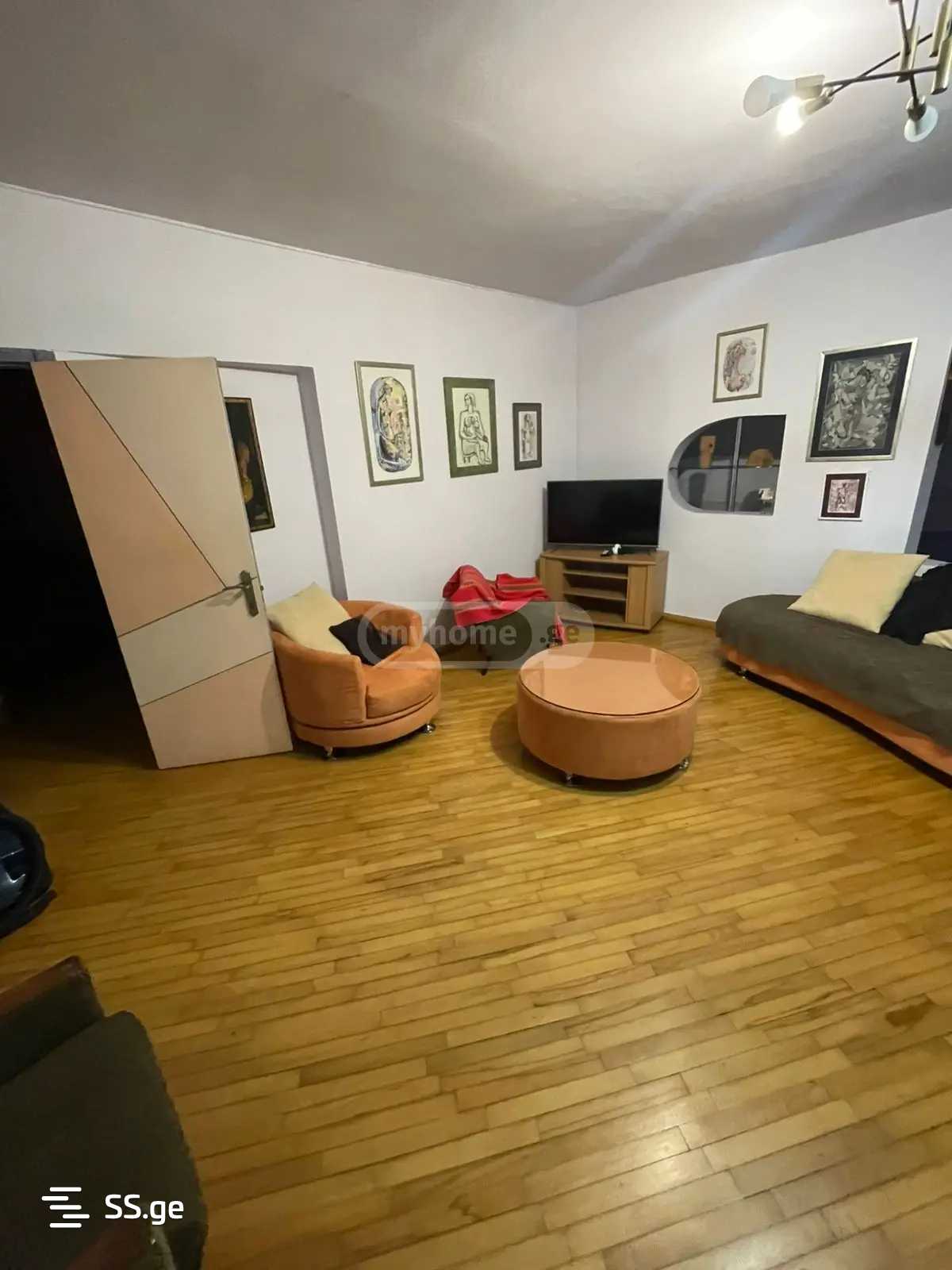 Квартира расположена по адресу: 4-е плато Нуцубидзе, 11-й дом. Улица называется Датуашвили. Квартира чистая, 2 раздельные спальни, 2 санузла. Разбитая, благоустроенная и удобная, центральное отопление практически со всем оборудованием. Понятно, со всех сторон солнца. Остановка внизу двора, 1 минута езды.
