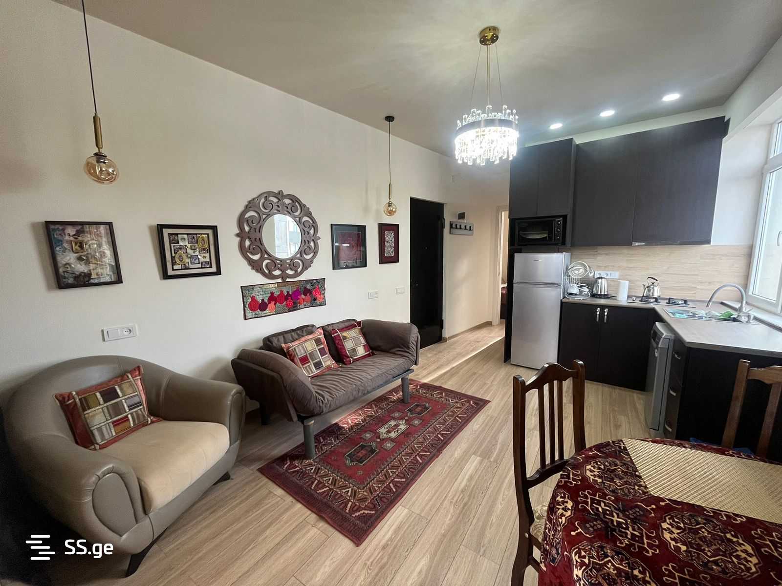Комментарий: A 2-room apartment is for rent with an isolated bedroom on Gotua Street, behind the City Hall. Very close to the University of Georgia. In a newly built building. With all kinds of furniture and appliances. Price 600$ two months in advance! 577297702