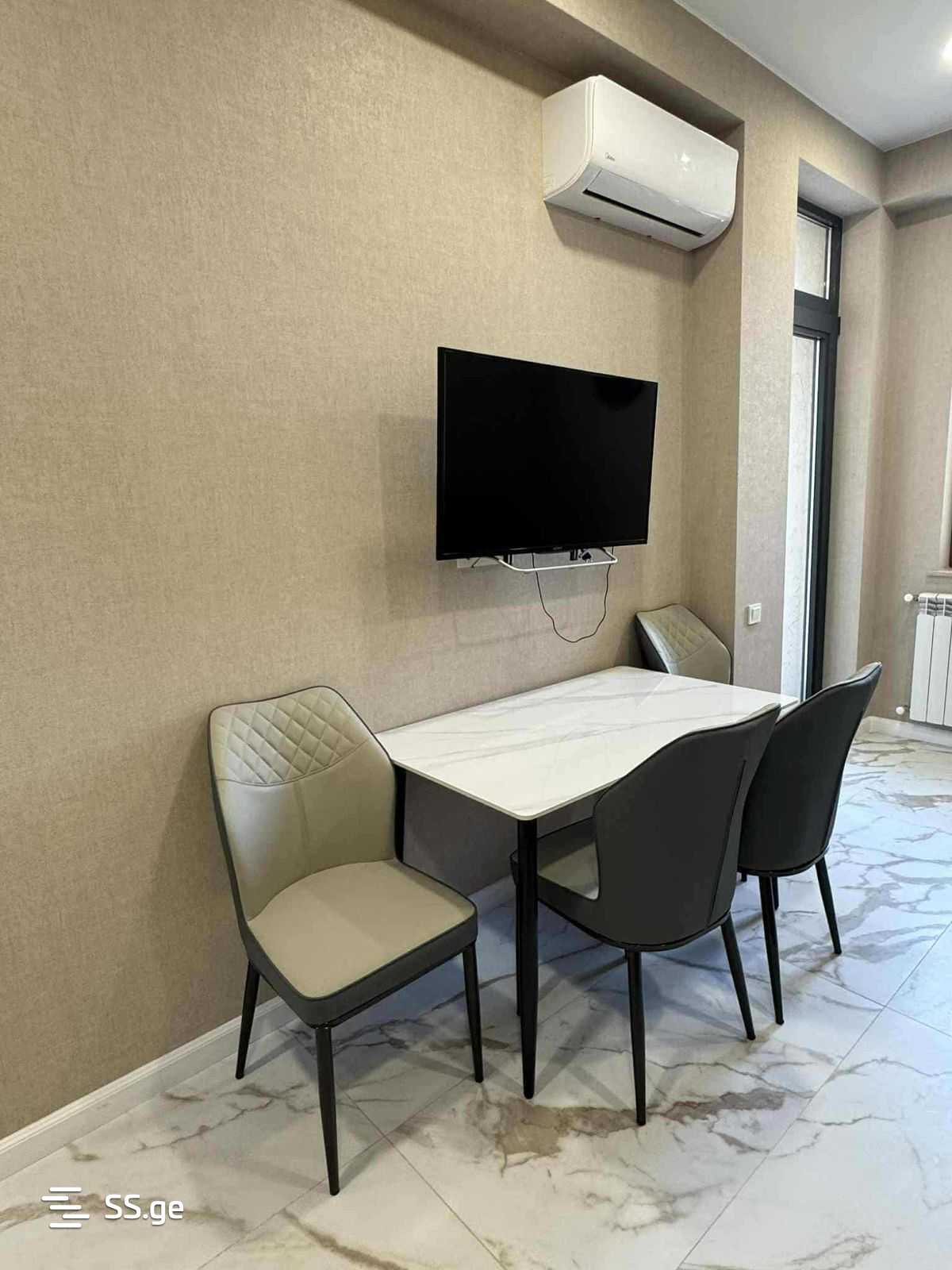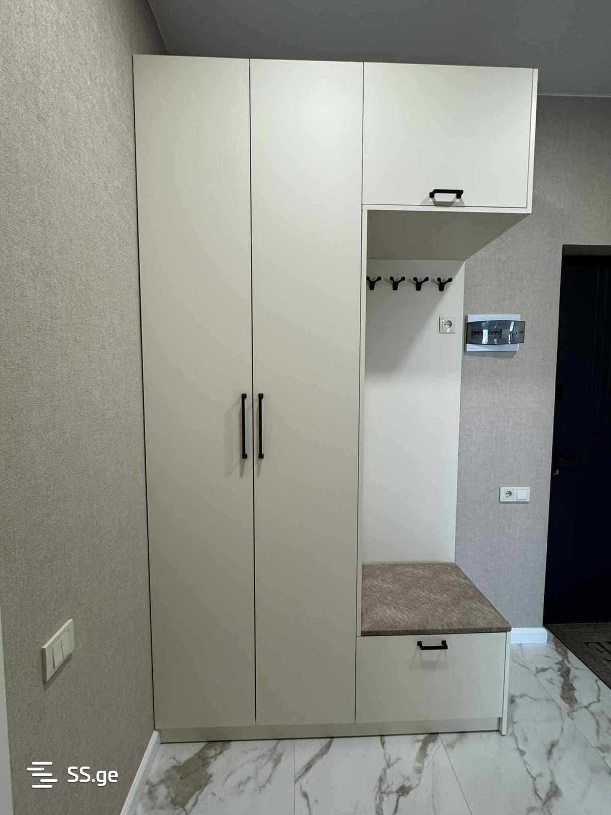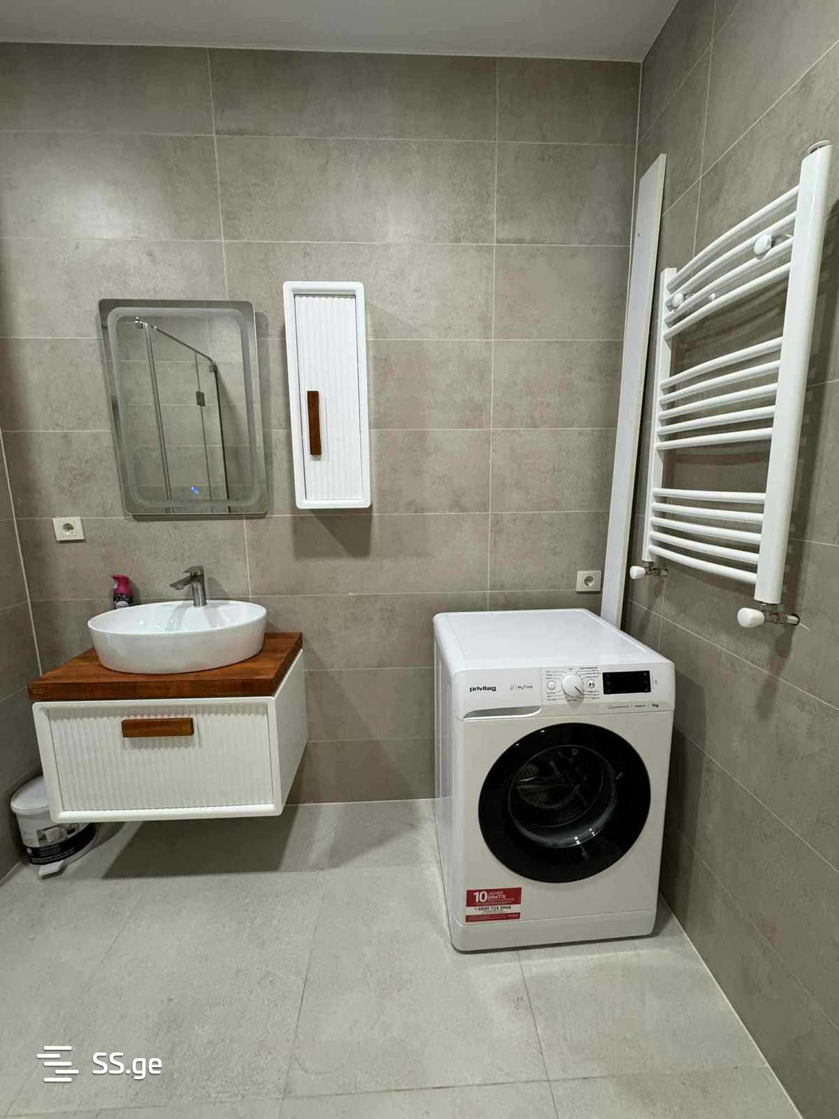 ბინაში არის ყველა საჭირო ავეჯი და ტექნიკა - მაცივარი, სარეცხის მანქანა, ტელევიზორი, კონდიციონერი, სათავსოები (კარადები).