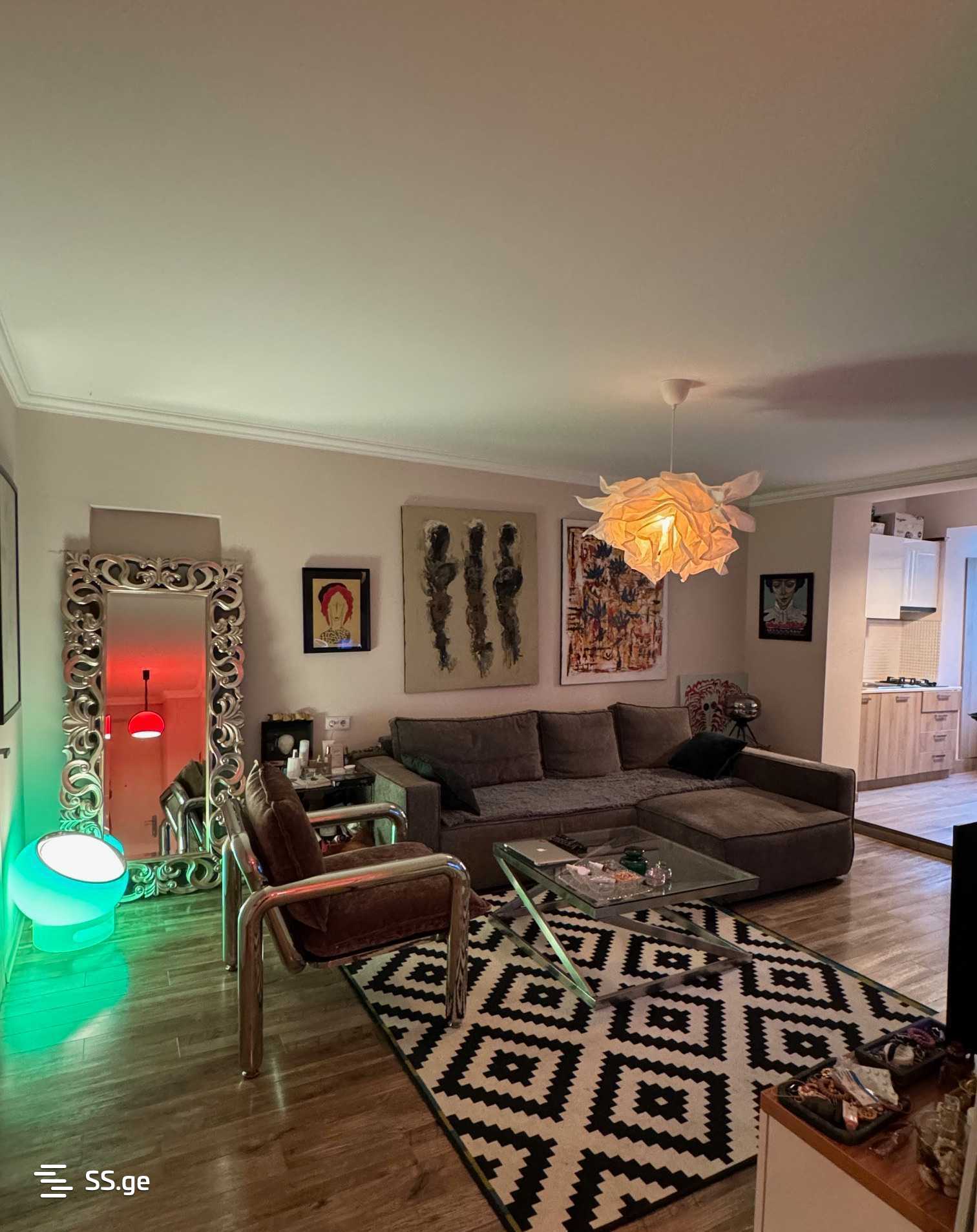 Сдается 3-комнатная квартира в Сбуртало, с мебелью, техникой и всем необходимым оборудованием. Квартира светлая, просторная, с балконом, спальня со стороны второго этажа. Отопление кондиционером. Сетки для защиты от насекомых. 1 стандартная и 2 маленькие спальни, во всех комнатах есть окна, хорошее расположение, оплата первый и последний месяц + коммунальные услуги.