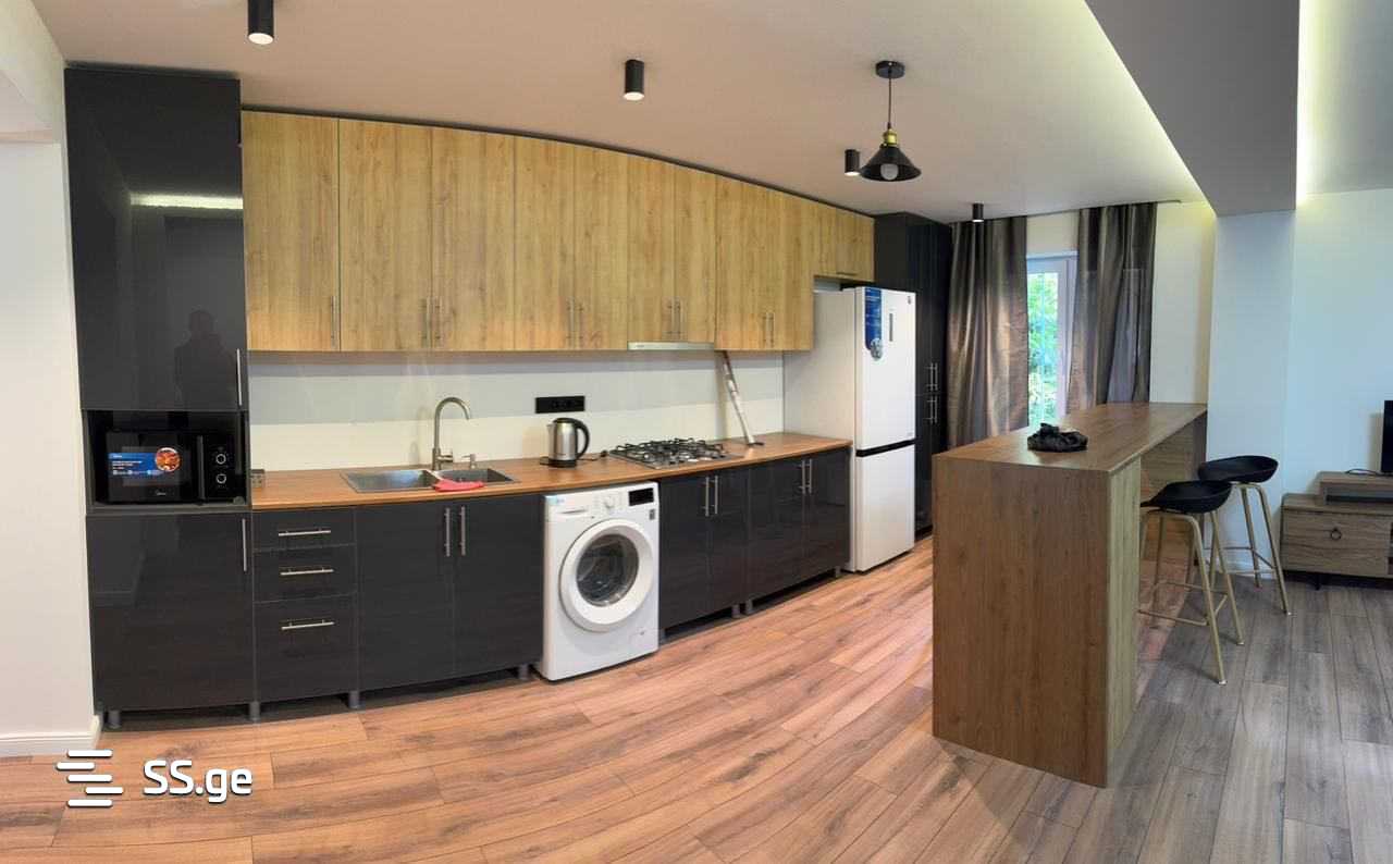 Угол светлый и проходной ровный. Ремонт выполнен из лучших экологически чистых материалов. Расположение идеальное, рядом с Алеей есть школа, сад и стадион. Скверы и детские площадки. Также 4 минуты остановки от центрального парка Дигоми. Предоплата за 2 месяца.