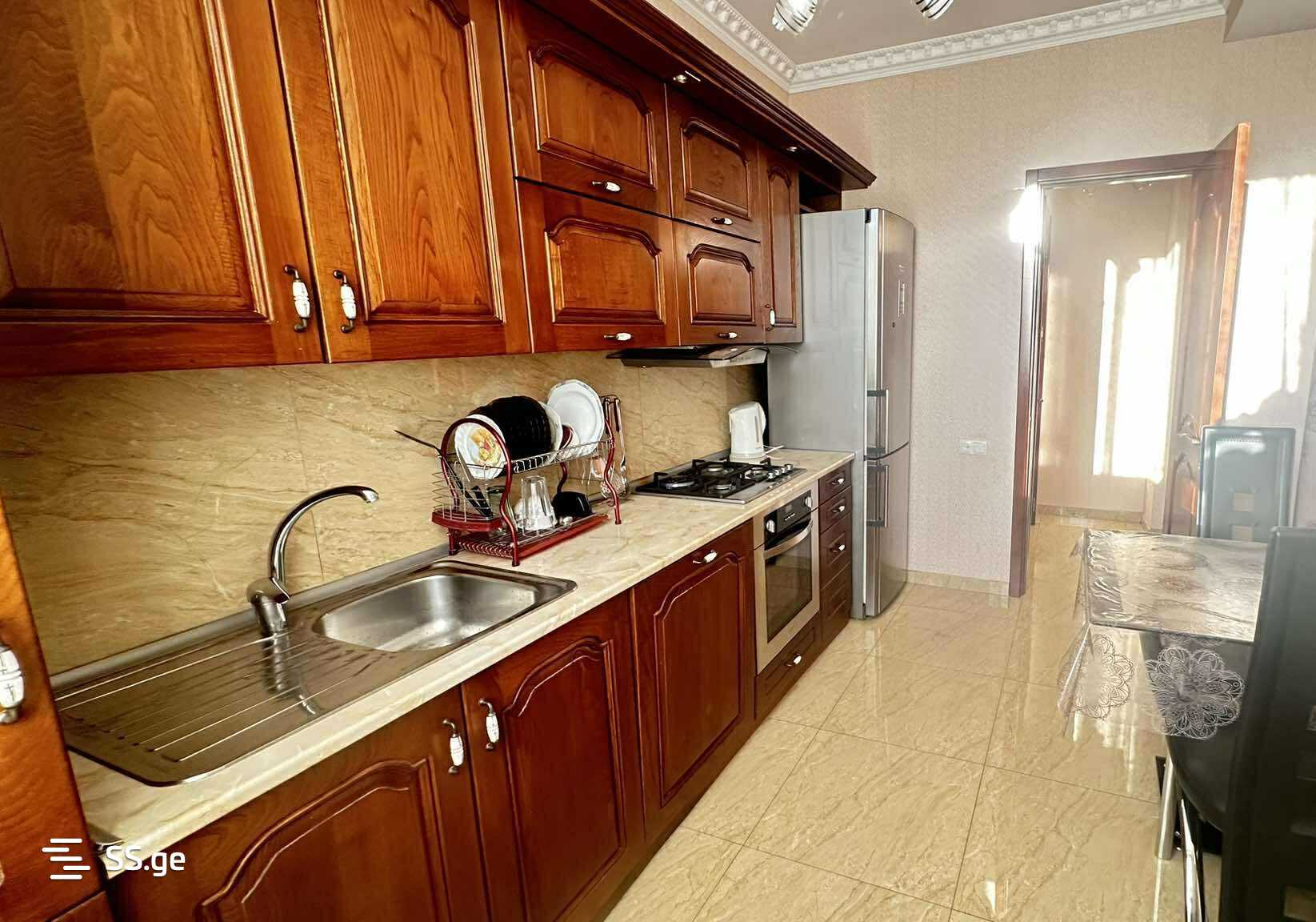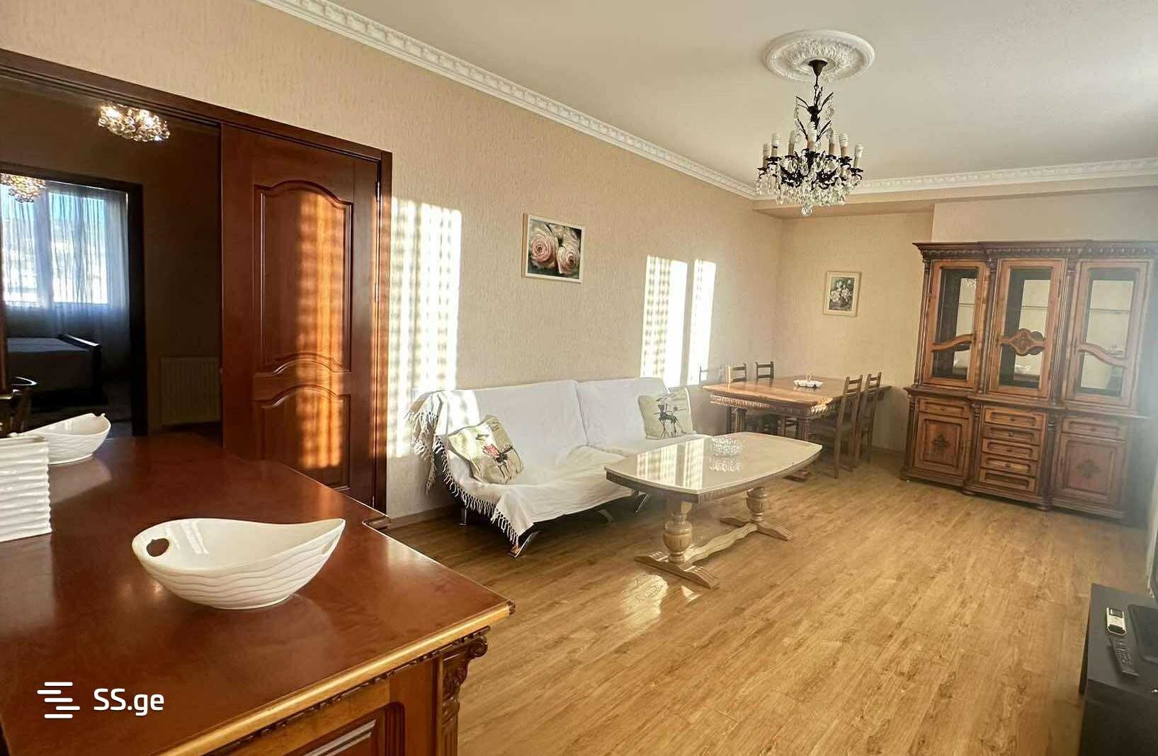 Сдается светлая трехкомнатная квартира с балконами в центре города, рядом с театром Марджанишвили, с изолированной кухней, двумя спальнями, двумя санузлами, с новым ремонтом, мебелью, техникой, с парковкой и прекрасным видом на город.