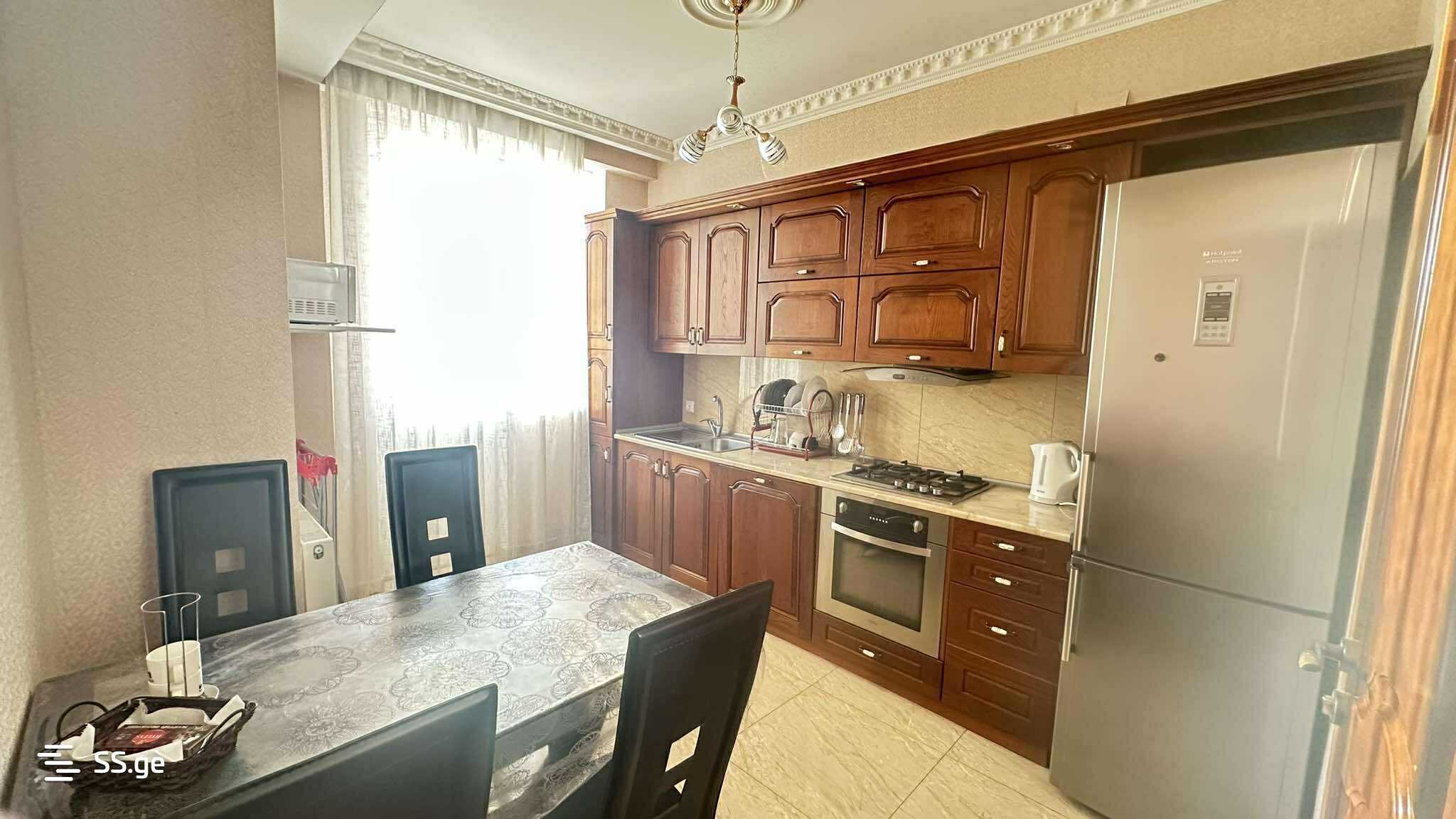 Комментарий: For rent is a bright three-room apartment with balconies in the city center, next to the Marjanishvili Theater, with an isolated kitchen, two bedrooms, two bathrooms, newly renovated, furnished, equipped, with parking, and wonderful views of the city.