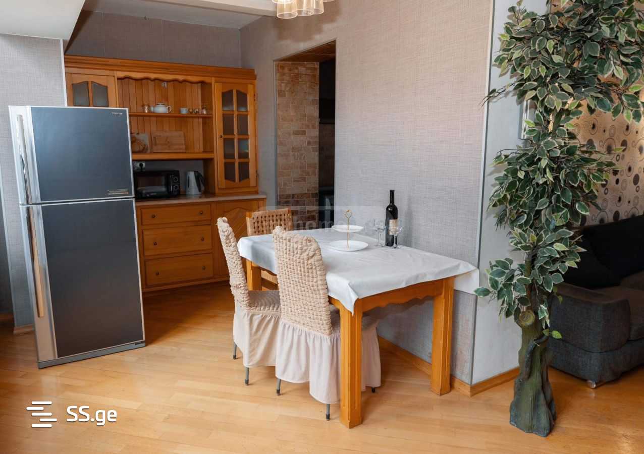 Комментарий: ქირაცდება 3 ოთახიანი ბინა . 2 ორსაწოლიანი ლოგინი 1 გასაშლელი დივანი. დიდი აივნით . ცენტრალური გათბობა, ინტერნეტი, ტელევიზორი, სარეცხის მანქანა, პირველ სართულზე მდებარეობს კაფე და 24 საათიანი