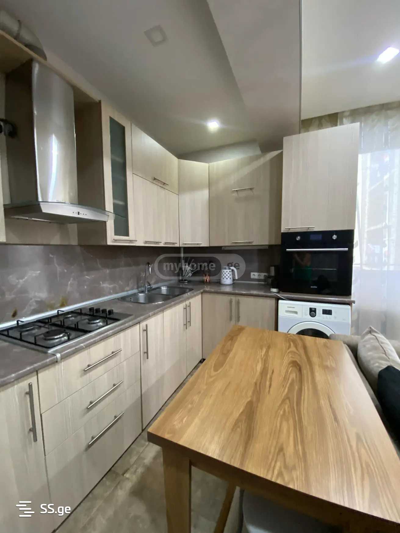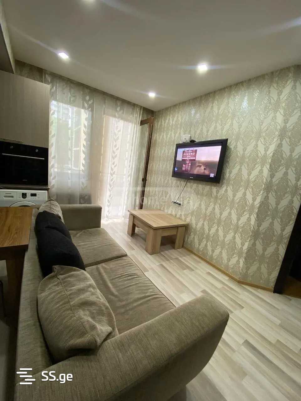 Срочно в аренду! 2-комнатная квартира с двумя спальнями, одна с основным, другая со вторичным освещением, в 5 минутах ходьбы от метро Ахметели. Квартира обеспечена всей необходимой бытовой техникой и предметами.