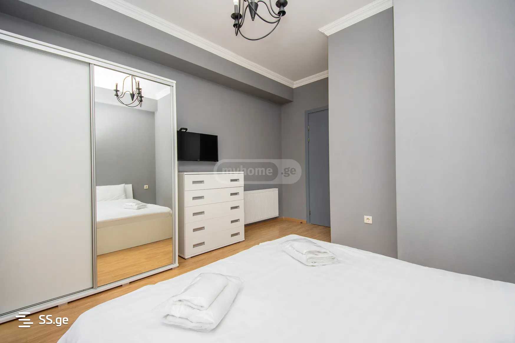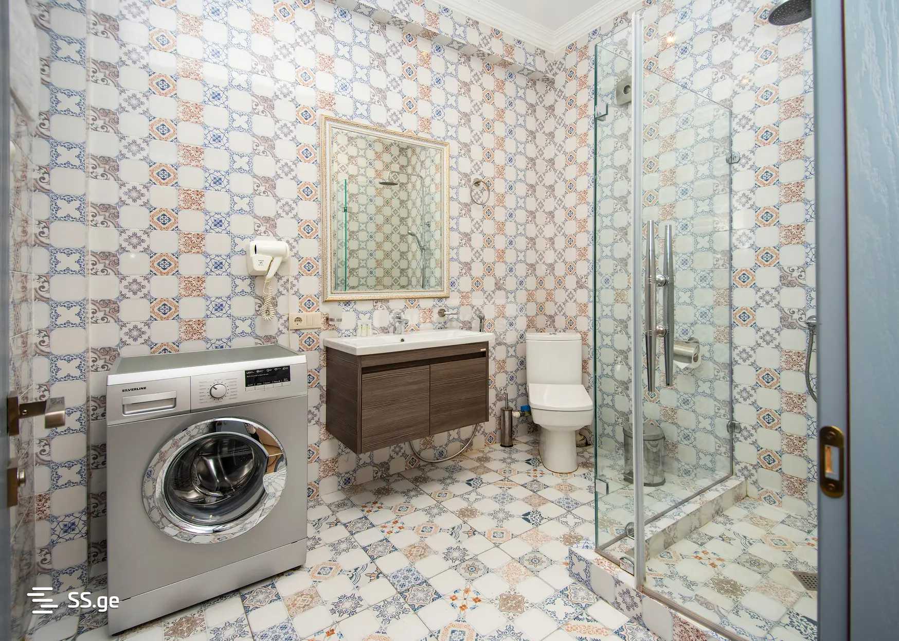 ბინაში არის ყველა საჭირო ავეჯი და ტექნიკა - მაცივარი, სარეცხის მანქანა, ტელევიზორი, კონდიციონერი, სათავსოები (კარადები).