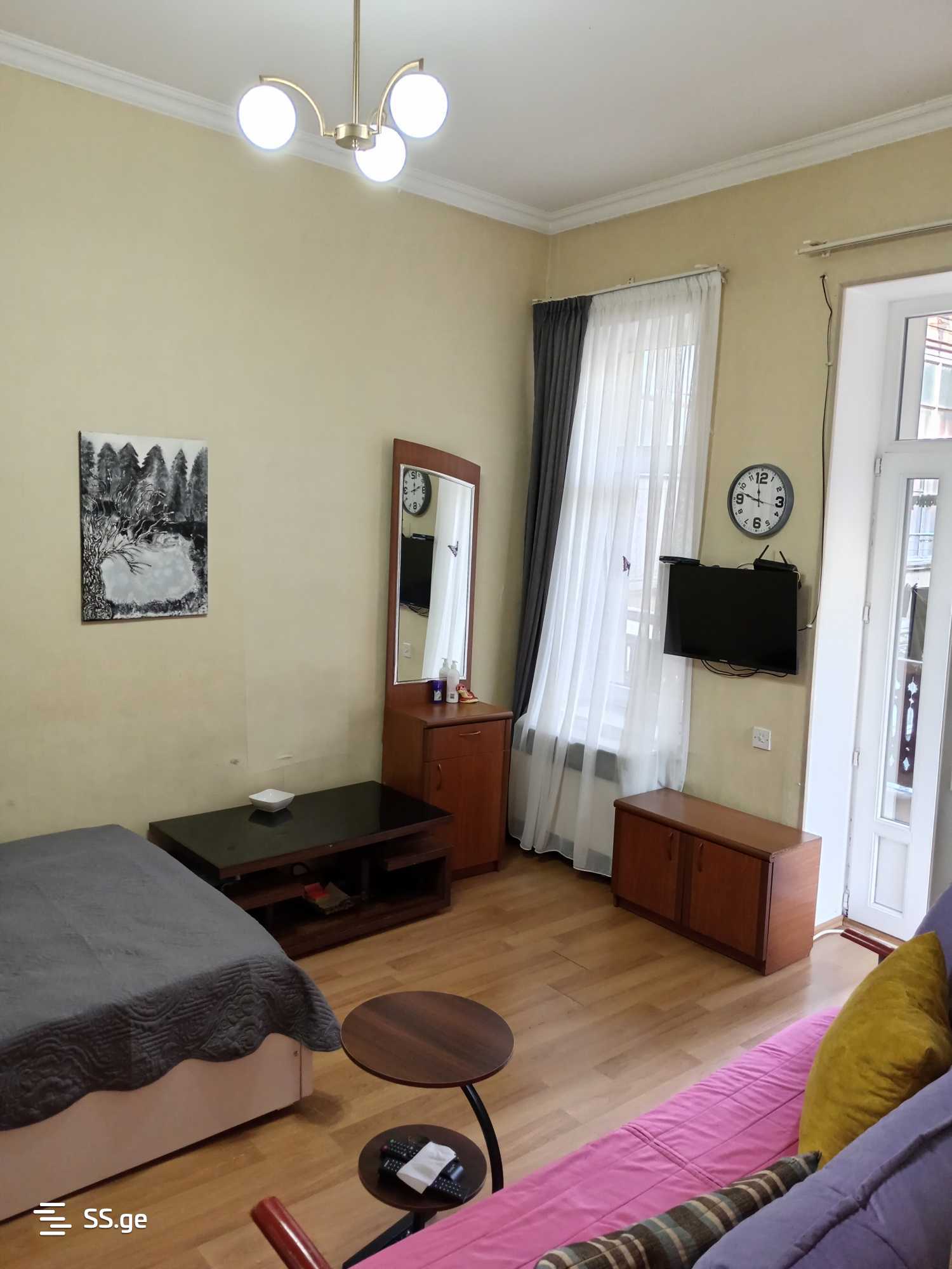 Комментарий: An 1-room renovated apartment is for rent on Tabukashvili Street, located on the 2nd (3rd) floor, furnished and equipped with appliances, for at least 1 year, with a prepaid deposit for the first and twelfth months. Price: 1000 GEL. Mobile: 574 03 88 48 real estate agent.