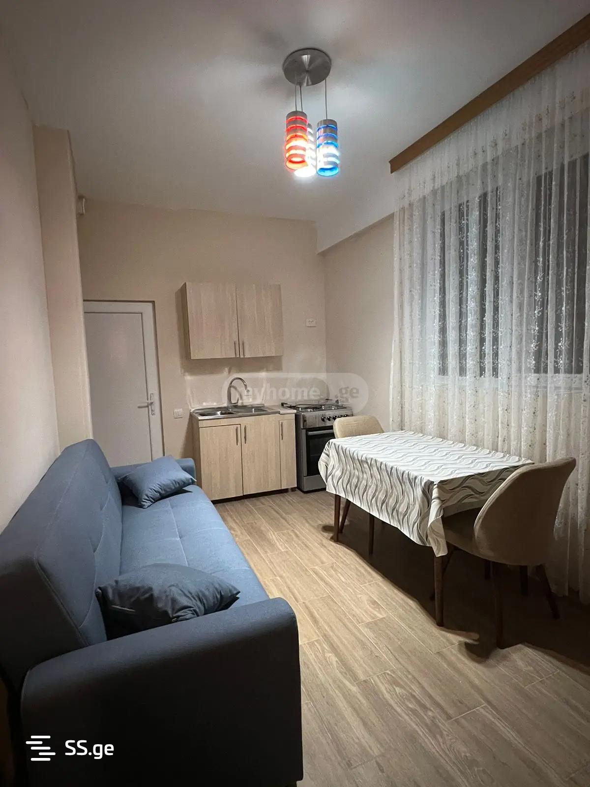 Комментарий: For rent, a 2-room apartment in a newly built building in Didube-Digomi on Demetre Tavdadebuli Street. The apartment is newly renovated. It has one bedroom, a studio living room, and a bathroom. The apartment is equipped with hot and cold water, a heating system, furniture, and appliances.
