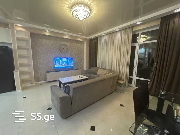 Сдается 3-комнатная квартира в Надзаладеви, на улице Чкондидели, в комплексе Бинекс, в новостройке, с мебелью и техникой, центральным отоплением, выходом на балкон как из гостиной, так и из спальни, с двухмесячной оплатой