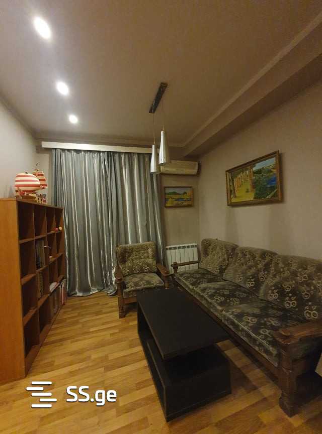 Комментарий: For rent (long-term) a 2-room renovated apartment on Tsintsadze Street, 1 bedroom, with a balcony, separate kitchen, 1 bathroom, central heating, internet, telephone, furniture, dishes, and all necessary items for the family. Two months' advance payment