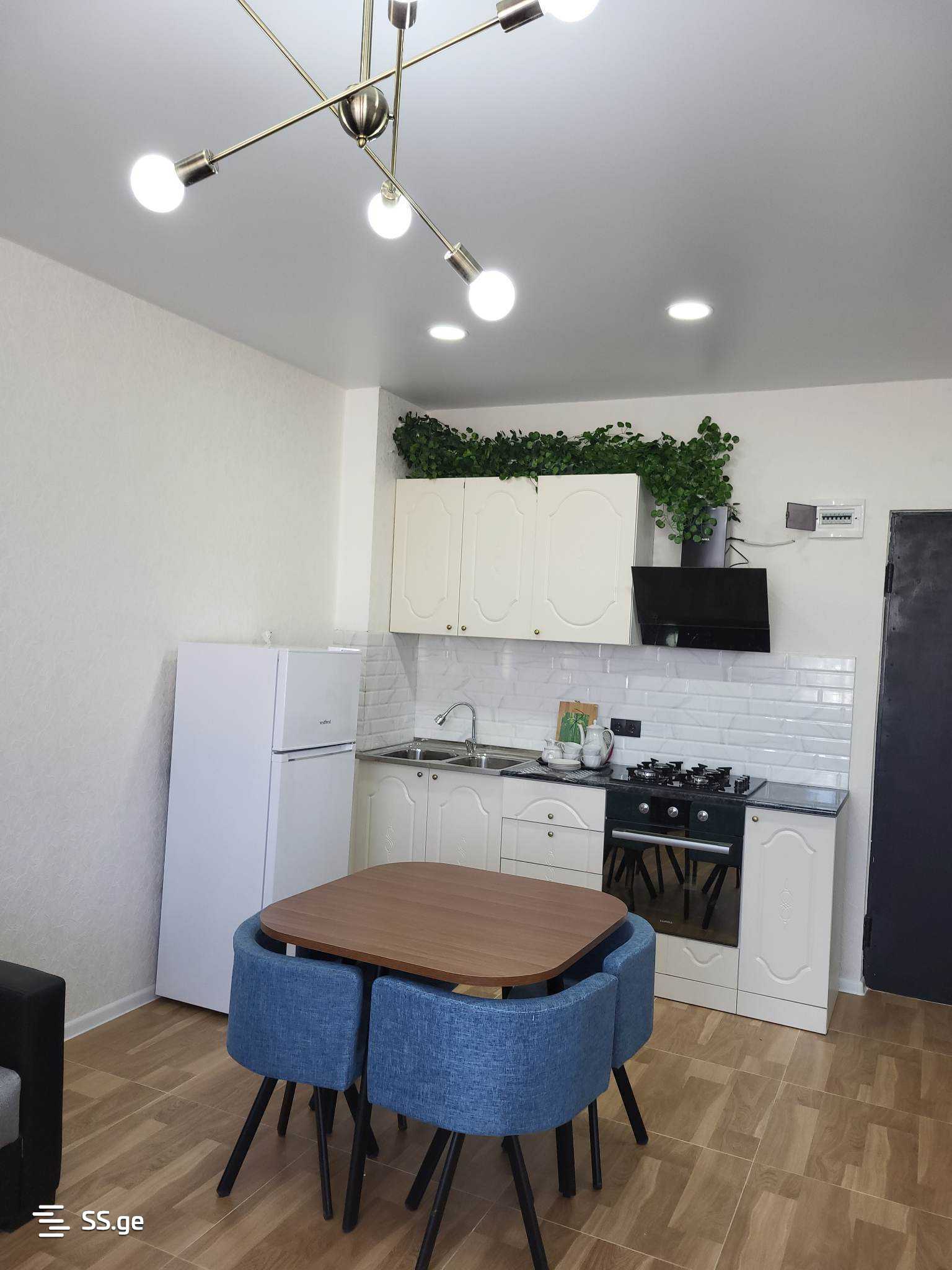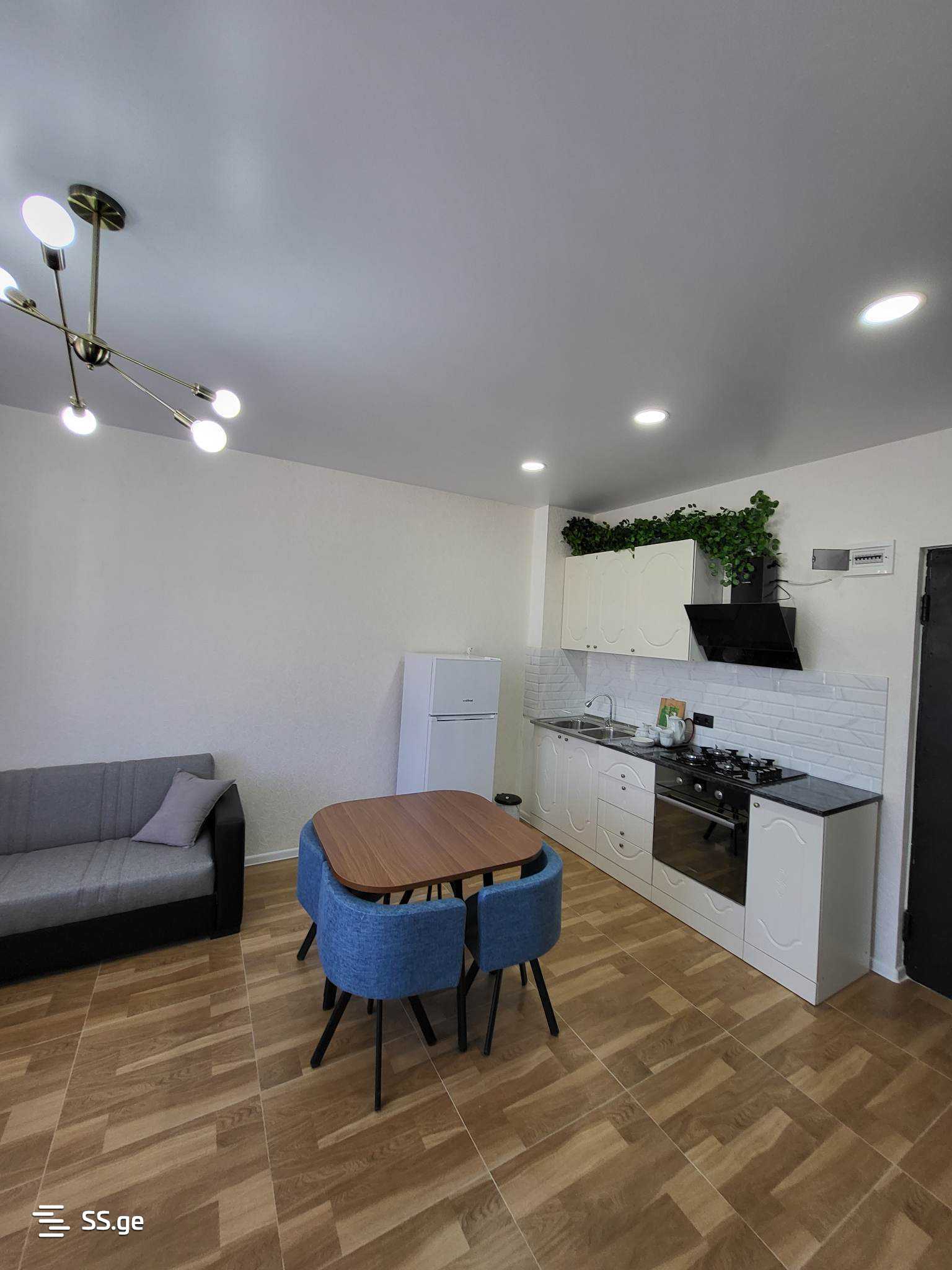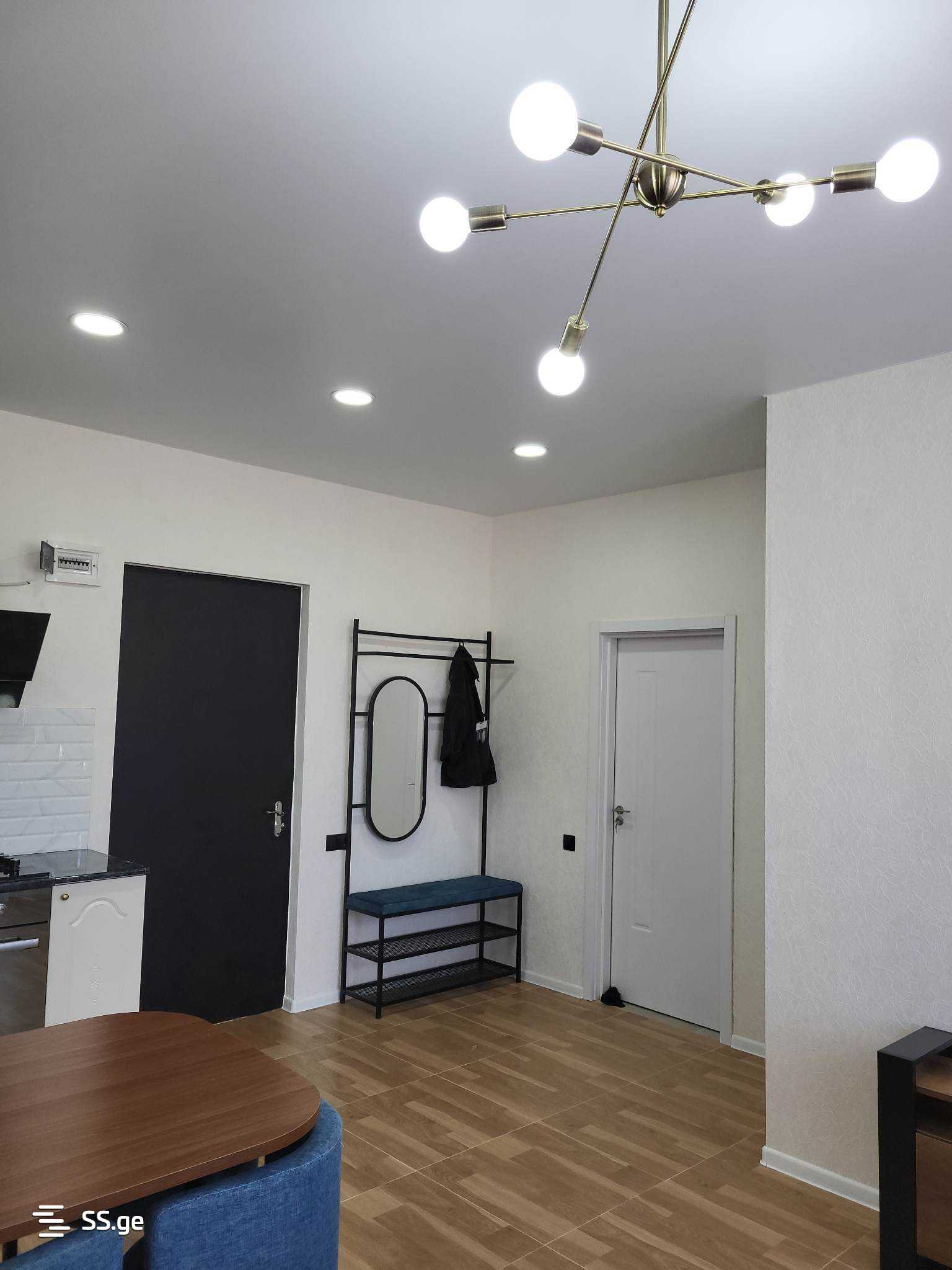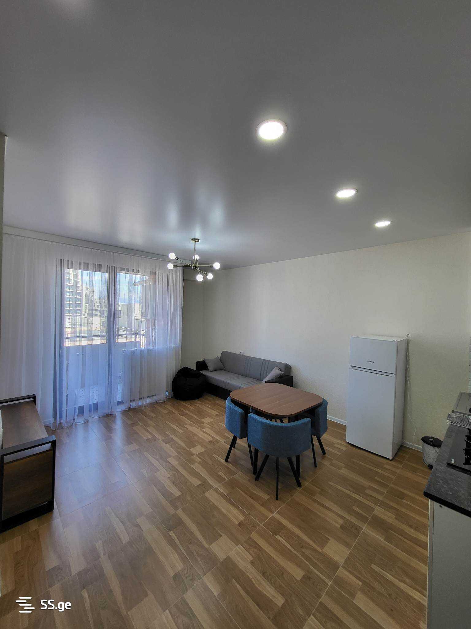 Комментарий: A furnished studio-type 2-room apartment is available for rent in Saburtalo, in a quiet and cozy place, on the 5th floor of a 5-story building, with air conditioning, a television, a balcony, and an elevator.