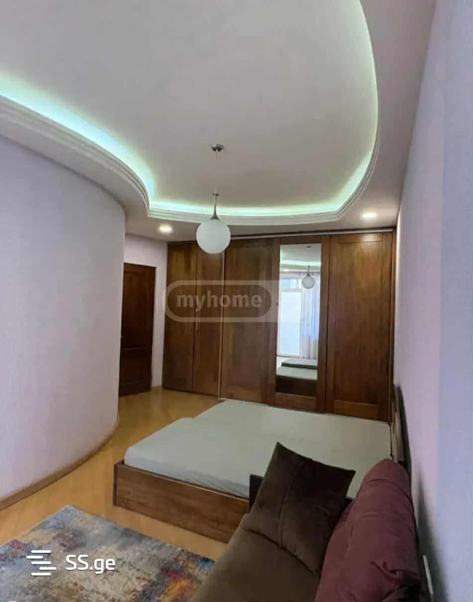Сдается на Сабуртало, рядом с метро Технический Университет (3 минуты пешком до метро), 83 кв.м., новостройка, светлая квартира. с мебелью и техникой. 9/11 этаж. Код входа и лифта. В квартире два лифта, две ванные комнаты, балкон, центральное отопление и очень большой гардероб.