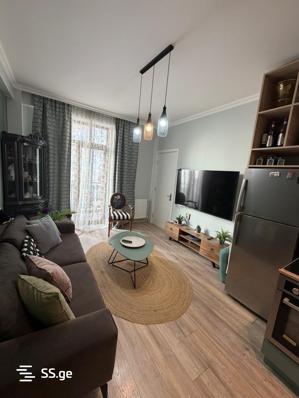 Срочно сдается благоустроенная квартира, оборудованная полной бытовой мебелью и техникой в строящемся жилом доме. Рядом ресторан Babilo, Государственная школа № 147. В 10 минутах ходьбы от станции метро Дидуби. В здании есть огороженный двор с парковкой, а также крытый бассейн и спа.