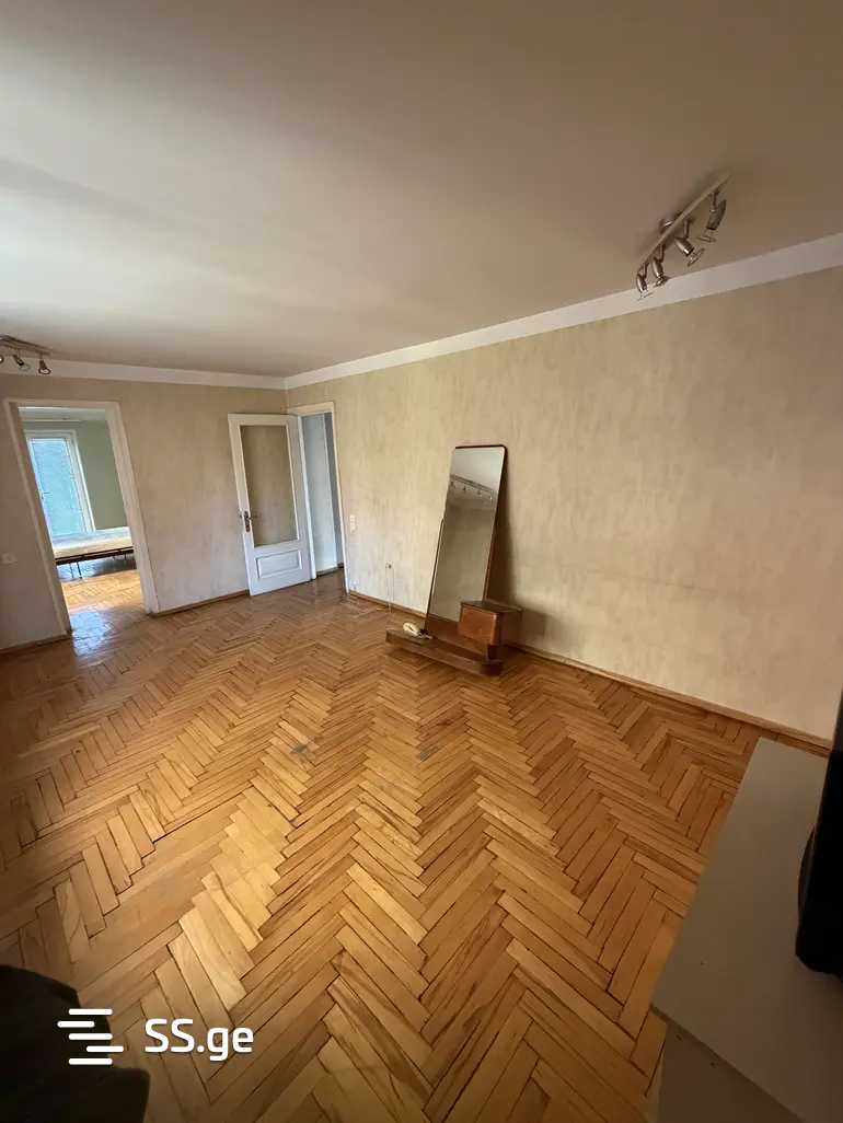 Сдается квартира 3 комнаты и 2 спальни возле метро Делиси на Тамарашвили 19а, со старым ремонтом, центральным отоплением, частично меблирована, как видно на фотографиях.