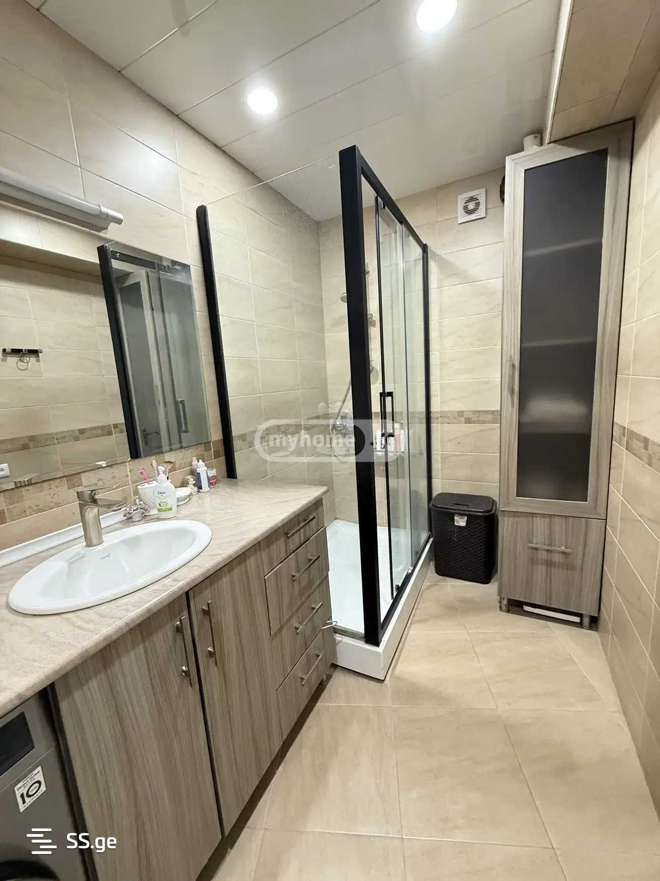 ბინაში არის ყველა საჭირო ავეჯი და ტექნიკა - მაცივარი, სარეცხის მანქანა, ტელევიზორი, კონდიციონერი, სათავსოები (კარადები).