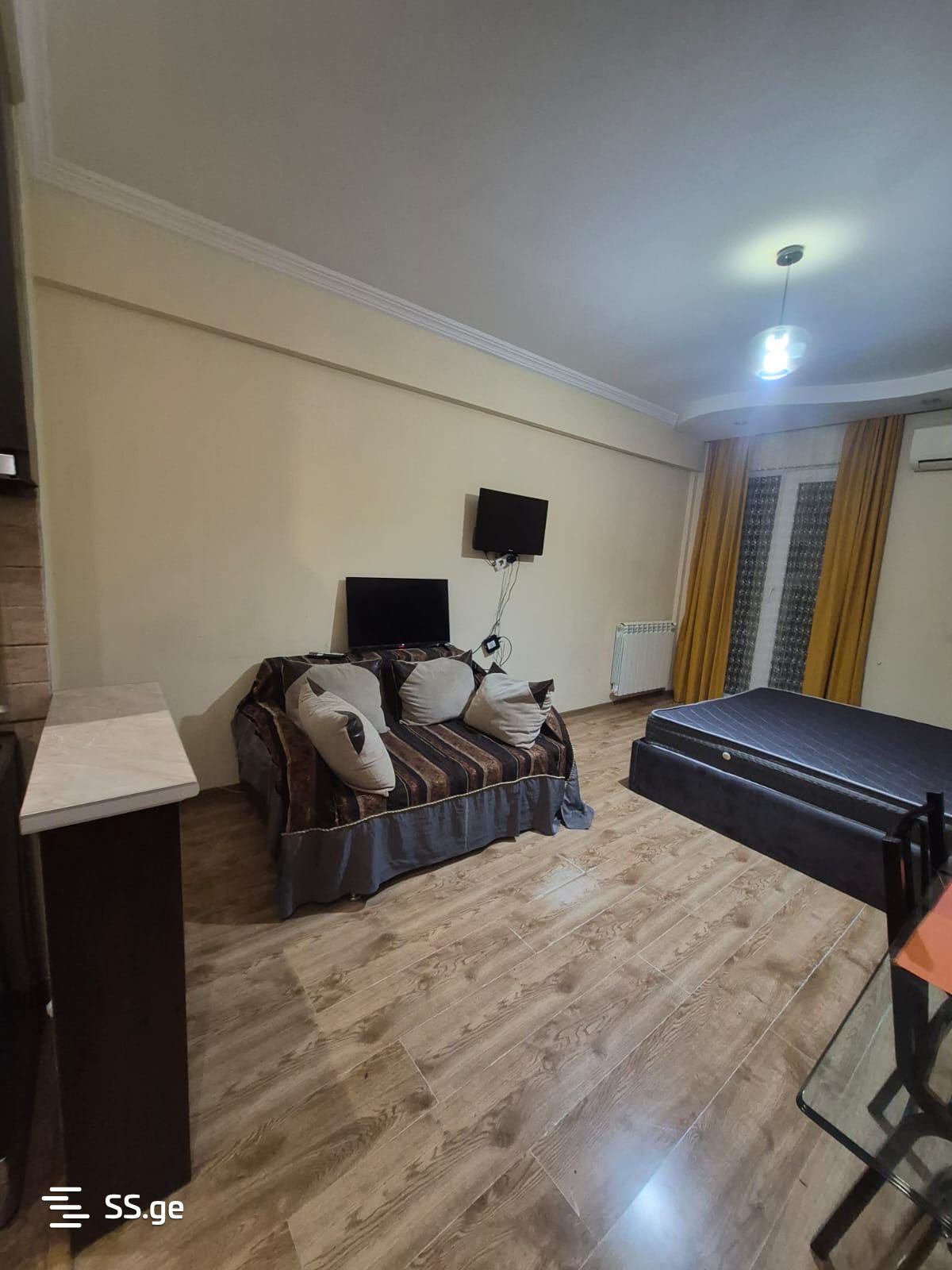 Комментарий: An 1-room apartment with a large balcony is available for rent on Pekini Avenue, equipped with central heating, furniture, and appliances.