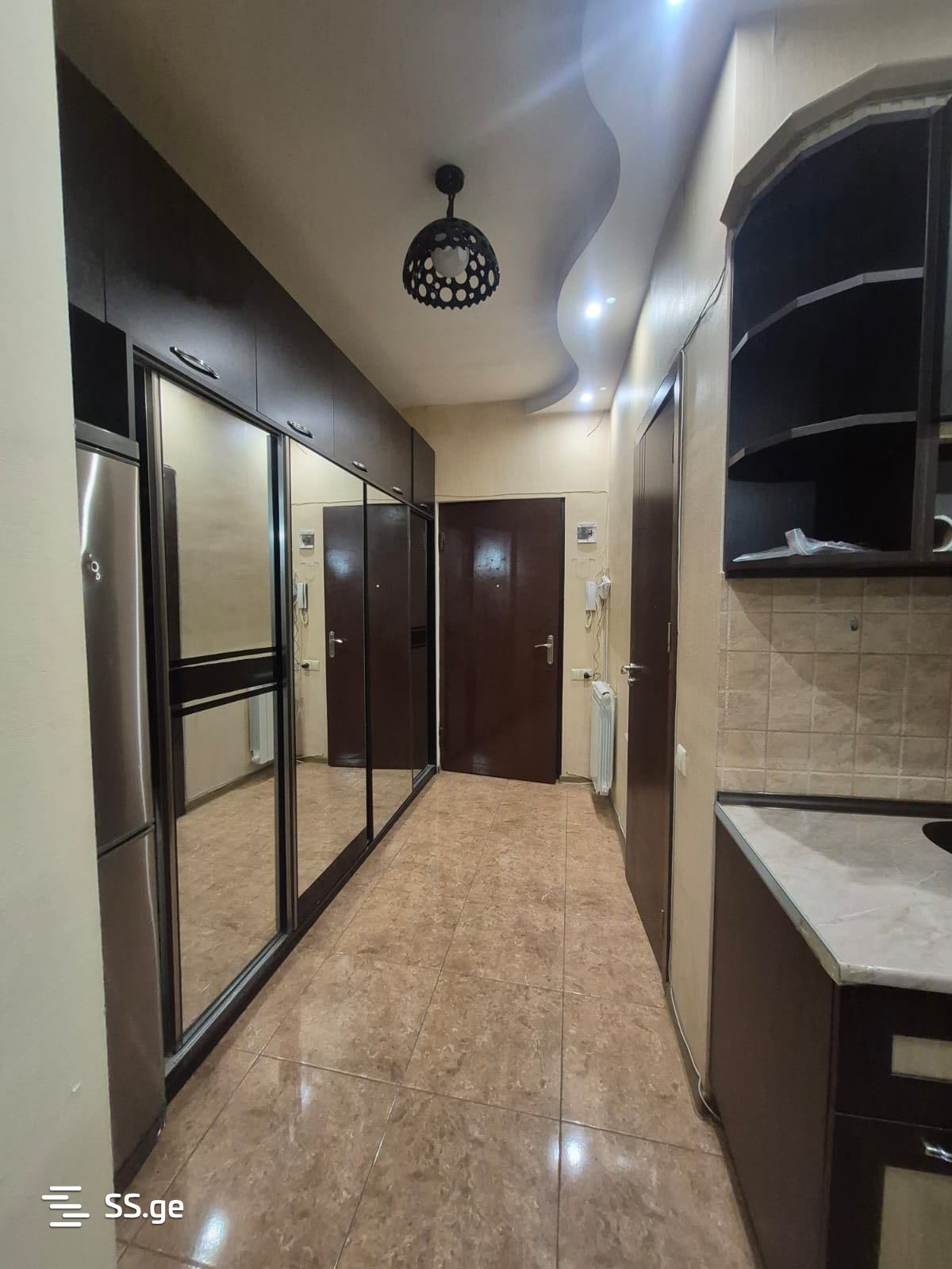 Сдается 1-комнатная квартира с большим балконом на проспекте Пекини, оборудованная центральным отоплением, мебелью и бытовой техникой.