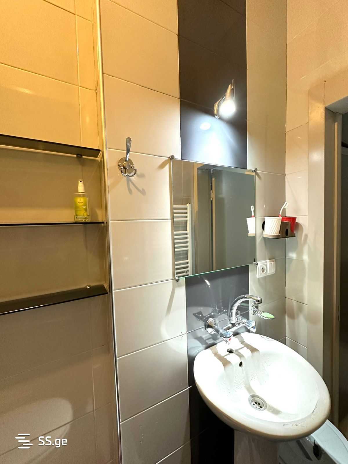 Комментарий: მეტროდან 3 წუთის სავალზე, სანზონაში ქირავდება ნათელი და მყუდრო ბინა. ბინა აღჭურვილია ყველა საჭირო ავეჯითა და ტექნიკით. (სურათზე არ ჩანს მაგიდა და სკამები მისაღებ ოთახში , რაც დაემატება აქირავების შემდეგ)