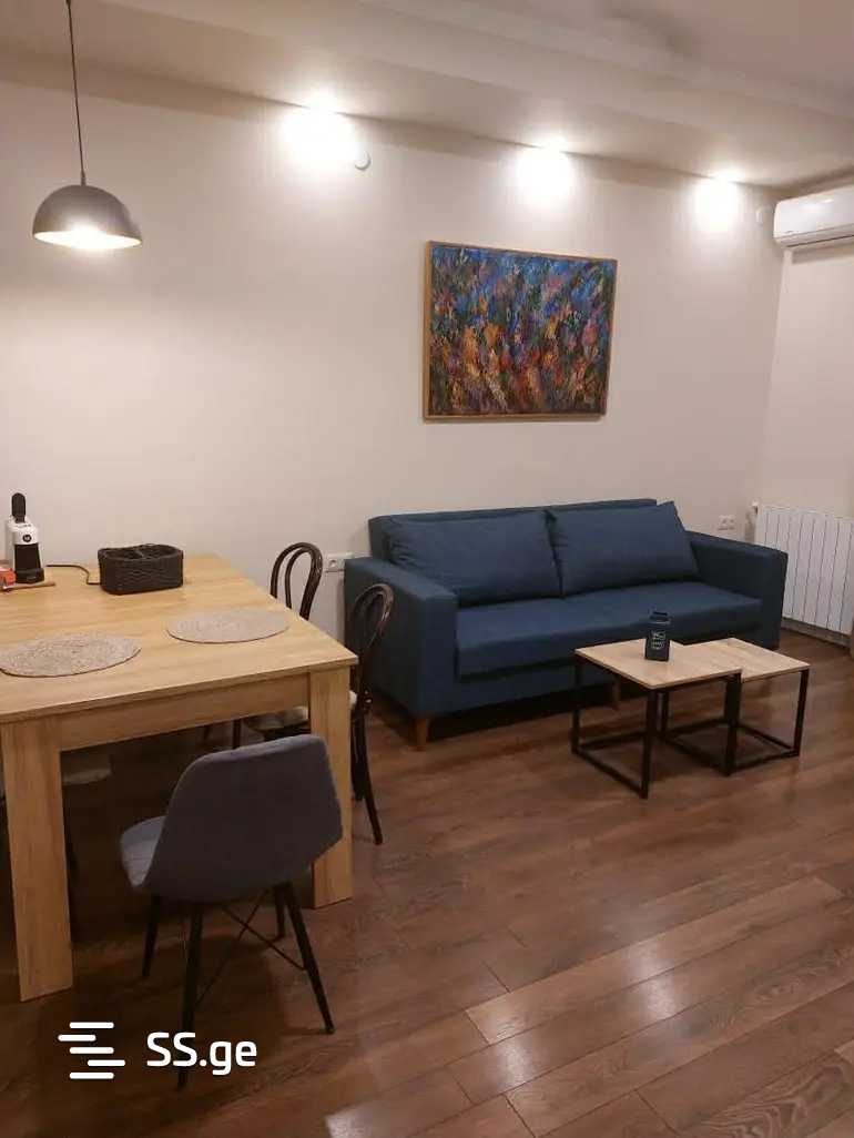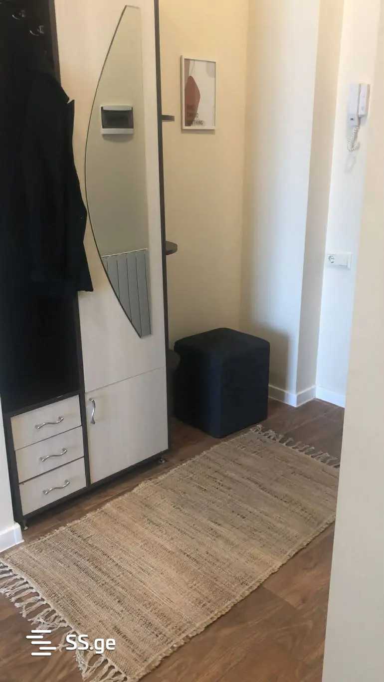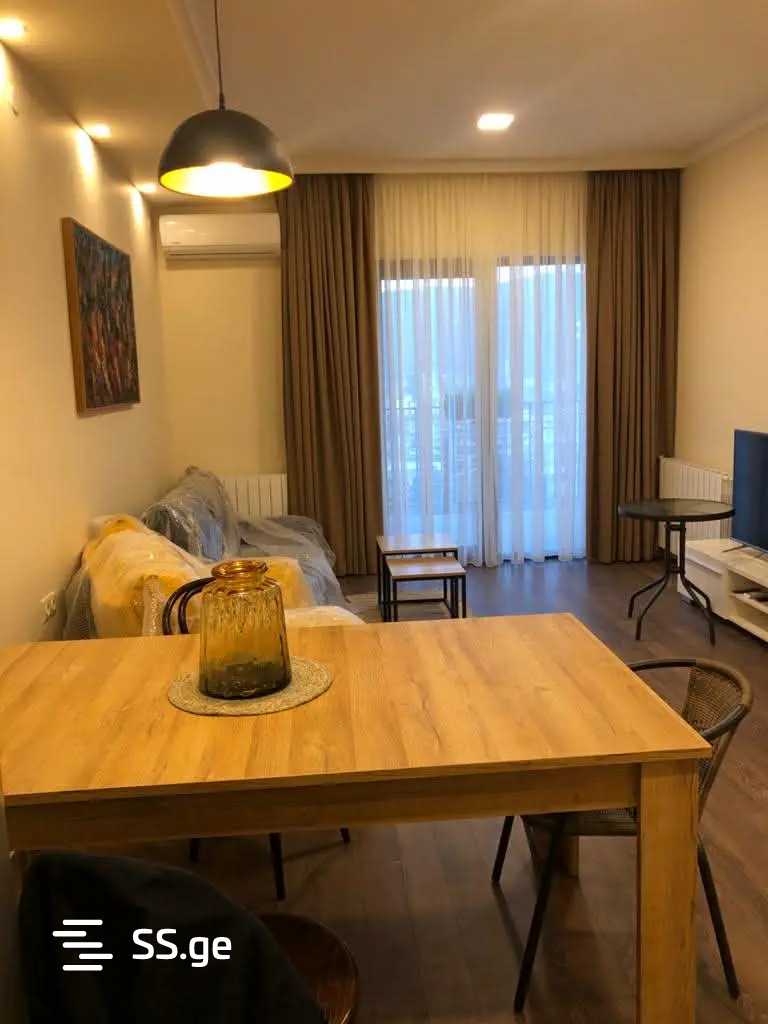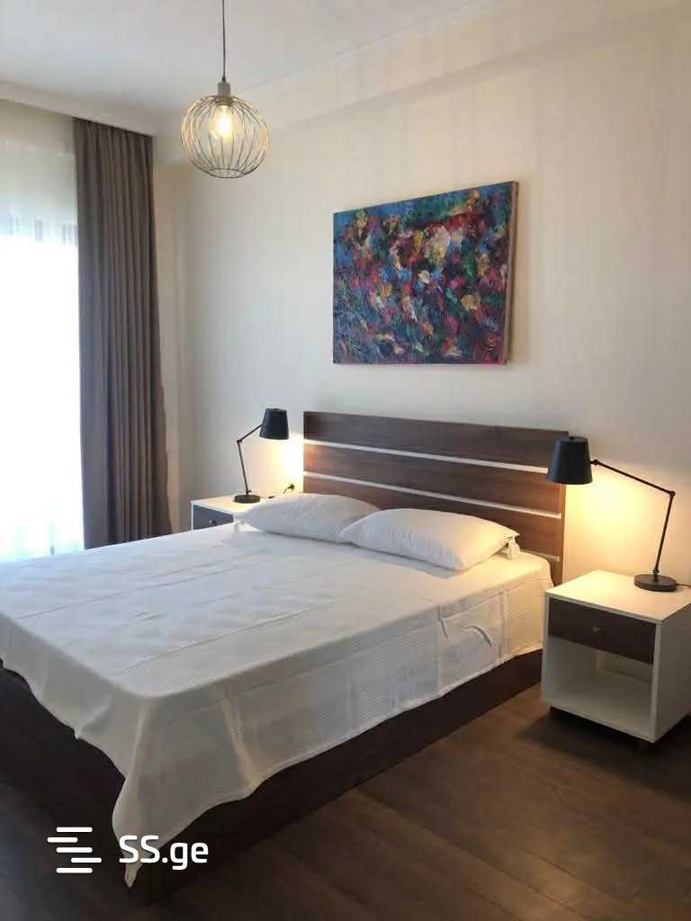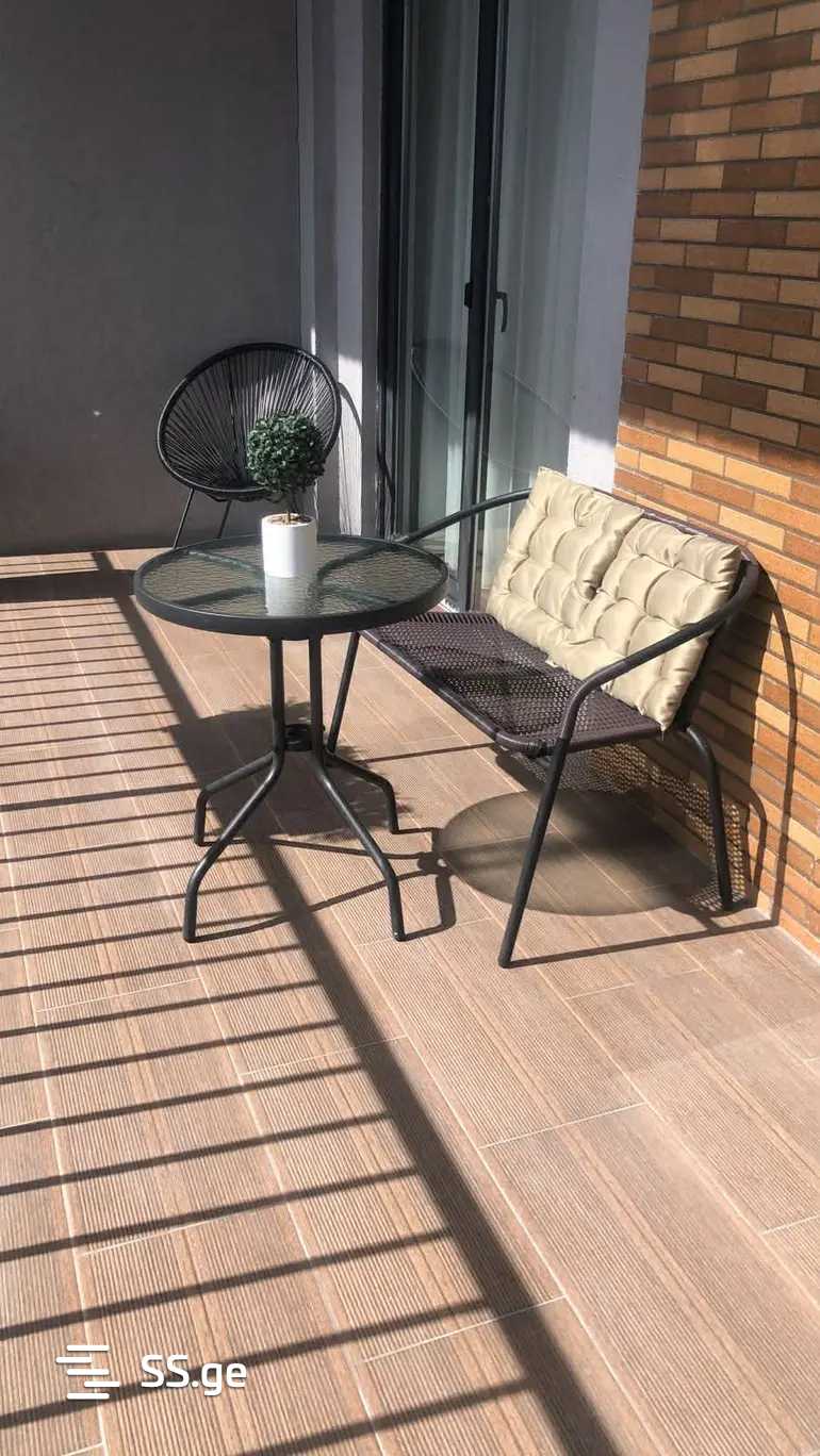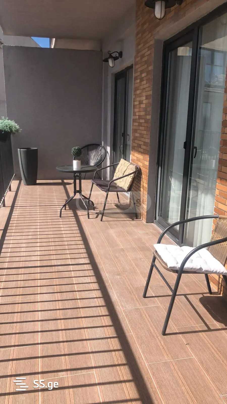 Комментарий: A 3-room apartment is for rent in Saburtalo with 2 bedrooms, a studio-type living room, a large veranda, and an individual parking space. Long-term rental is considered.