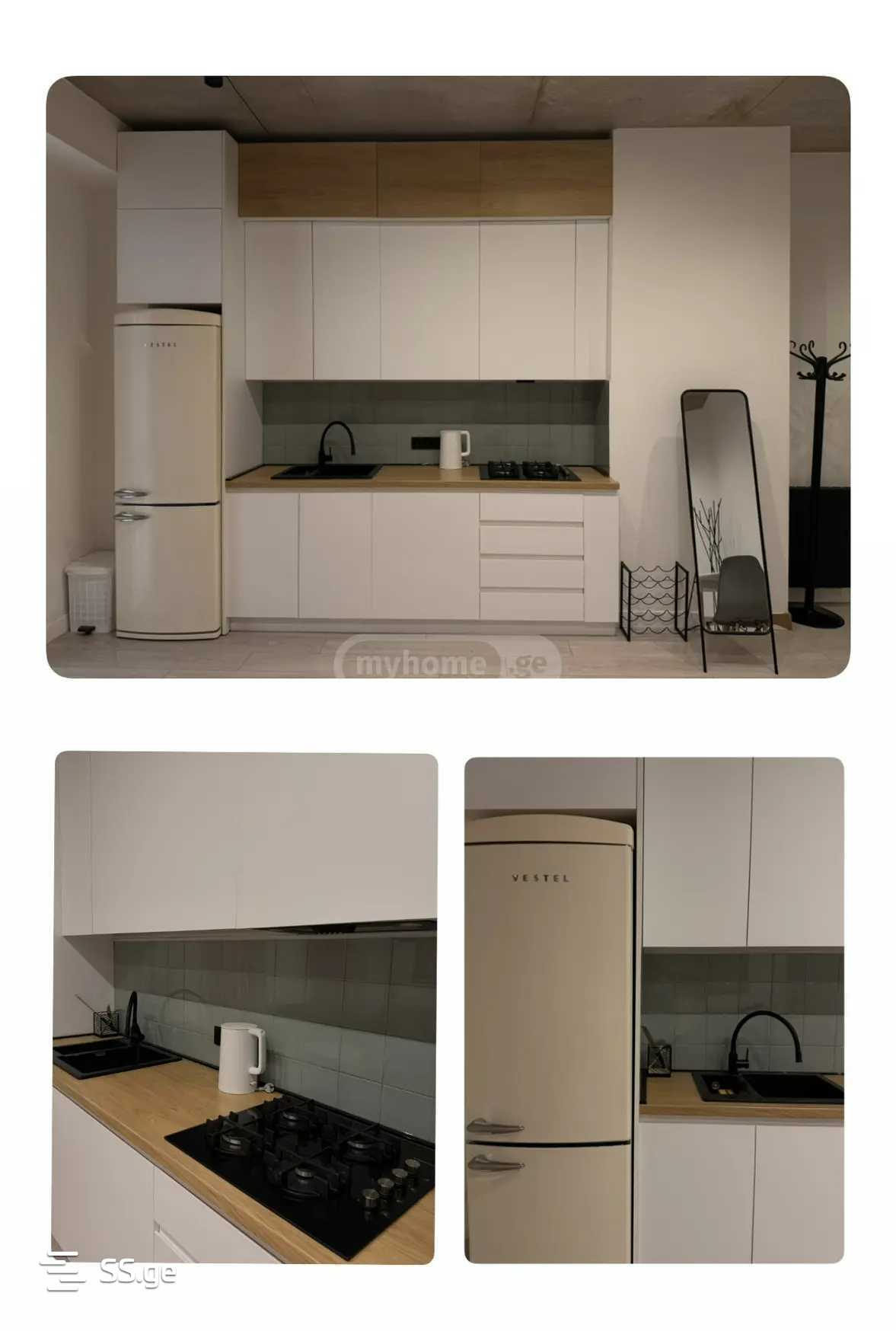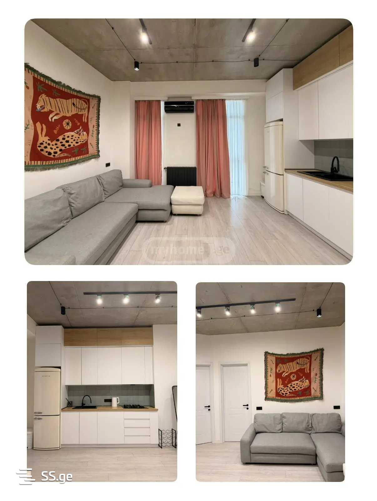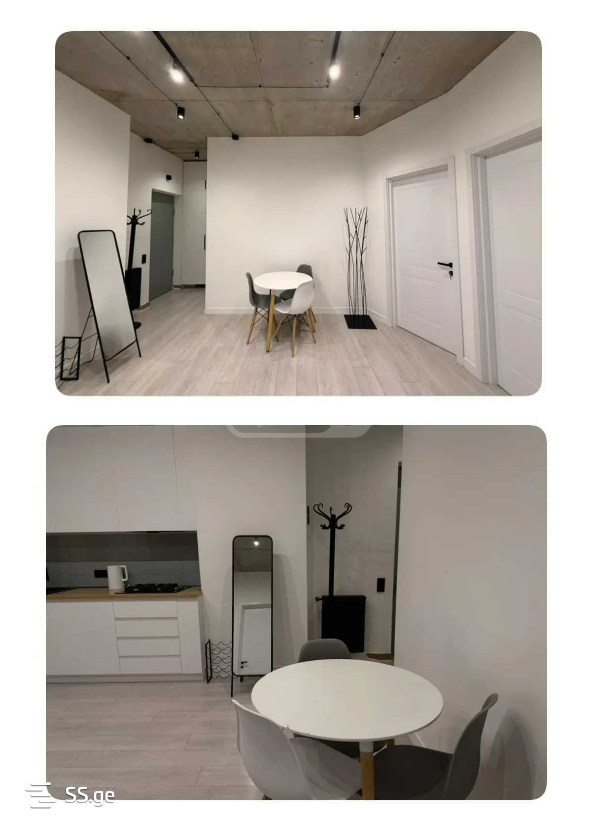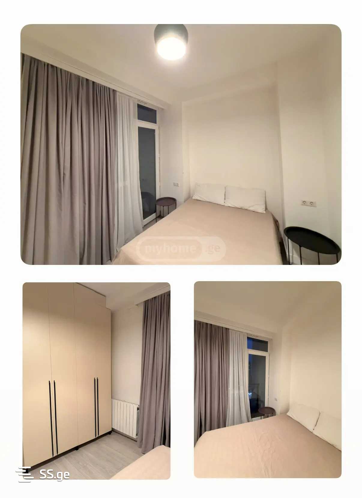 Комментарий: ქირავდება ბინა ვახუშტი ბაგრატიონის ქუჩაზე, 57 კვ.მ. ერთი საძინებლით (მეორე დახურულია), აქვს სტუდიოს ტიპის მისაღები & ორი აივანი: პანორამული ხედებით ვახუშტის ხიდზე და წერეთლის გამზირზე.