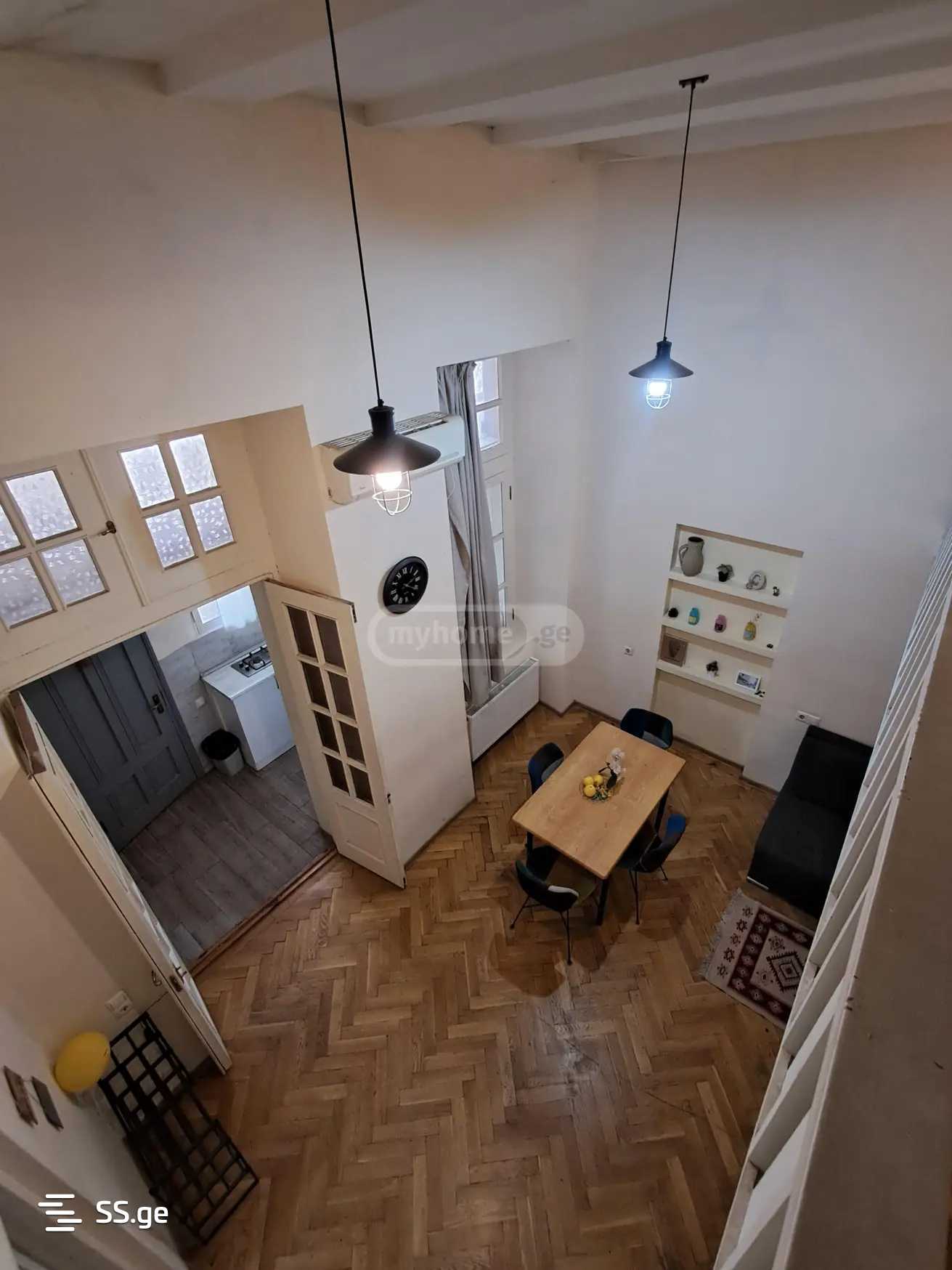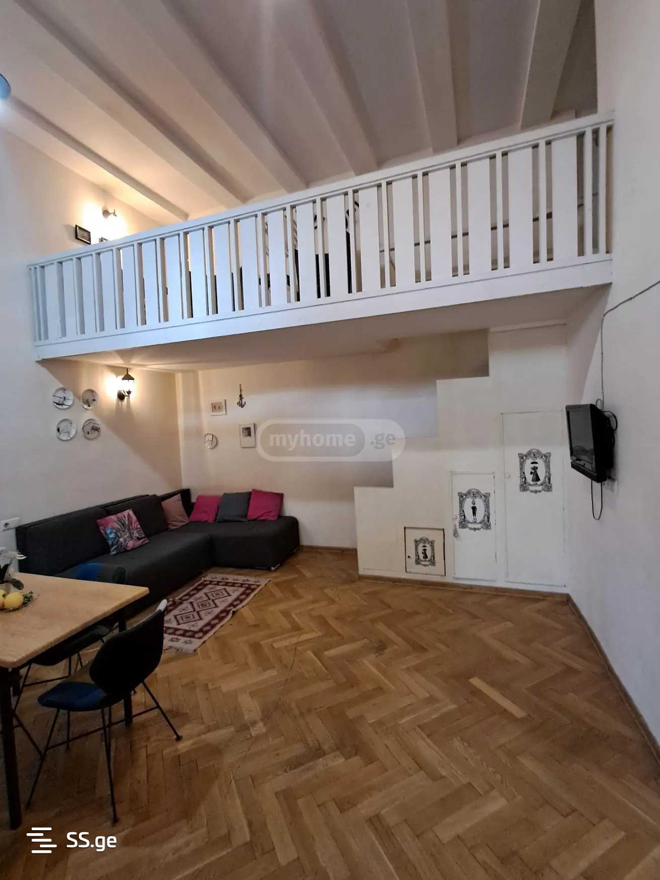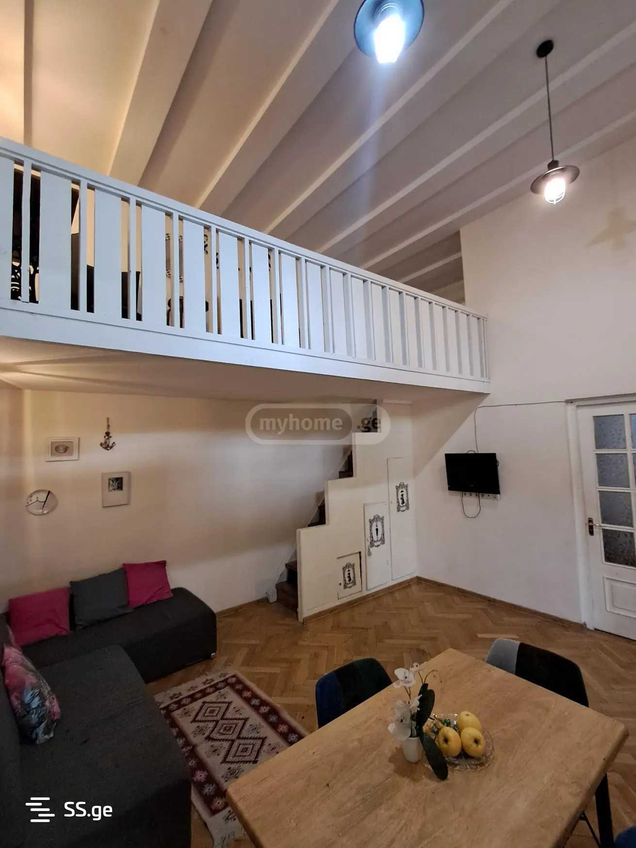 Комментарий: A beautiful well-furnished apartment with a mezzanine is for rent near the Marjanishvili Metro on Agmashenebeli Avenue. The apartment is in an Italian courtyard. Payment is for the first and last month.