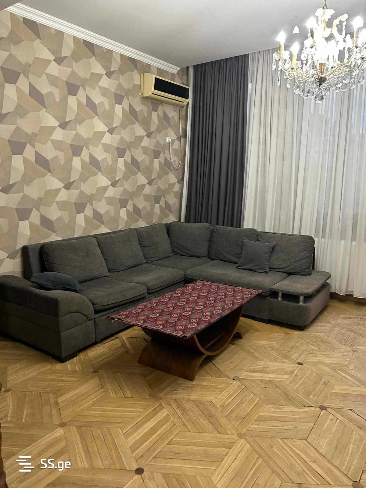 Комментарий: For rent: a 3-room apartment at the intersection of Pekini and Vazha-Pshavela Street. Renovated 5th floor (with elevator) 110 sq. m, furnished with appliances, central heating with air conditioning.