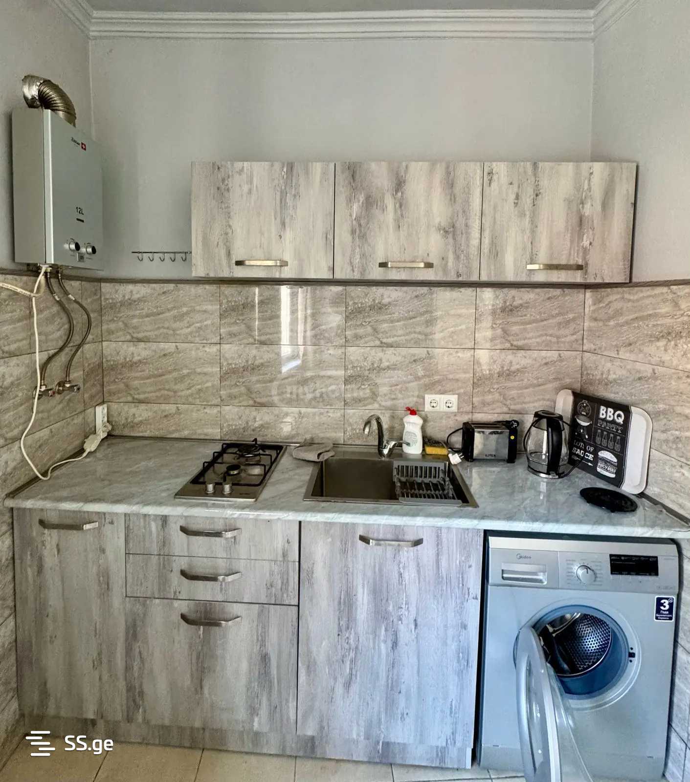ბინაში არის ყველა საჭირო ავეჯი და ტექნიკა მაცივარი, სათავსოები (კარადები).