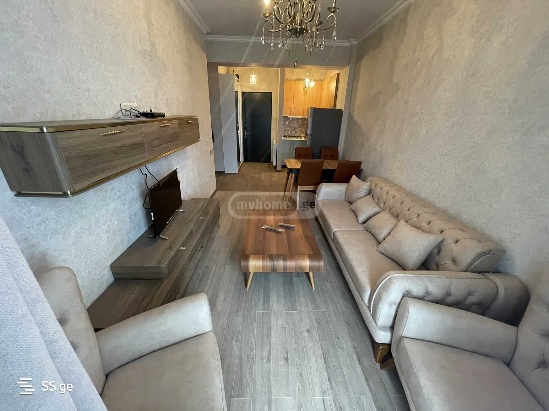 Комментарий: In Didi Digomi, in a newly built building, a newly renovated 2-room apartment is for rent. The apartment is located near Goodwill. The apartment is equipped with all necessary furniture and appliances. Each room has its own balcony.