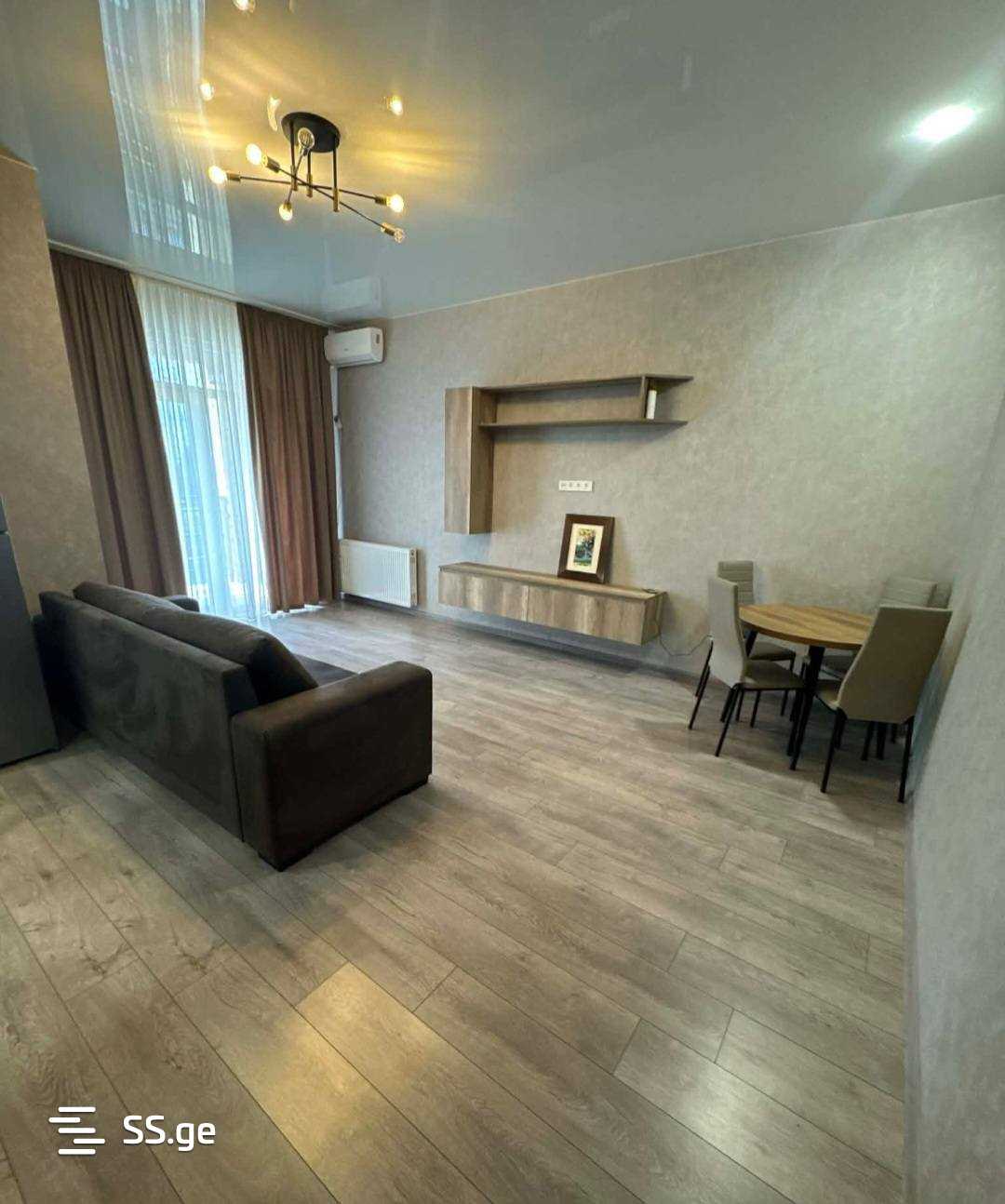 Комментарий: For rent in Ortachala near Astoria. 50 sq m 2-room renovated apartment in a newly built building. Has 1 bedroom. Balcony. Central heating. Furniture and appliances. Floor. 4/8 Price: 1300 GEL (with two months payment) 599699677 557285445.