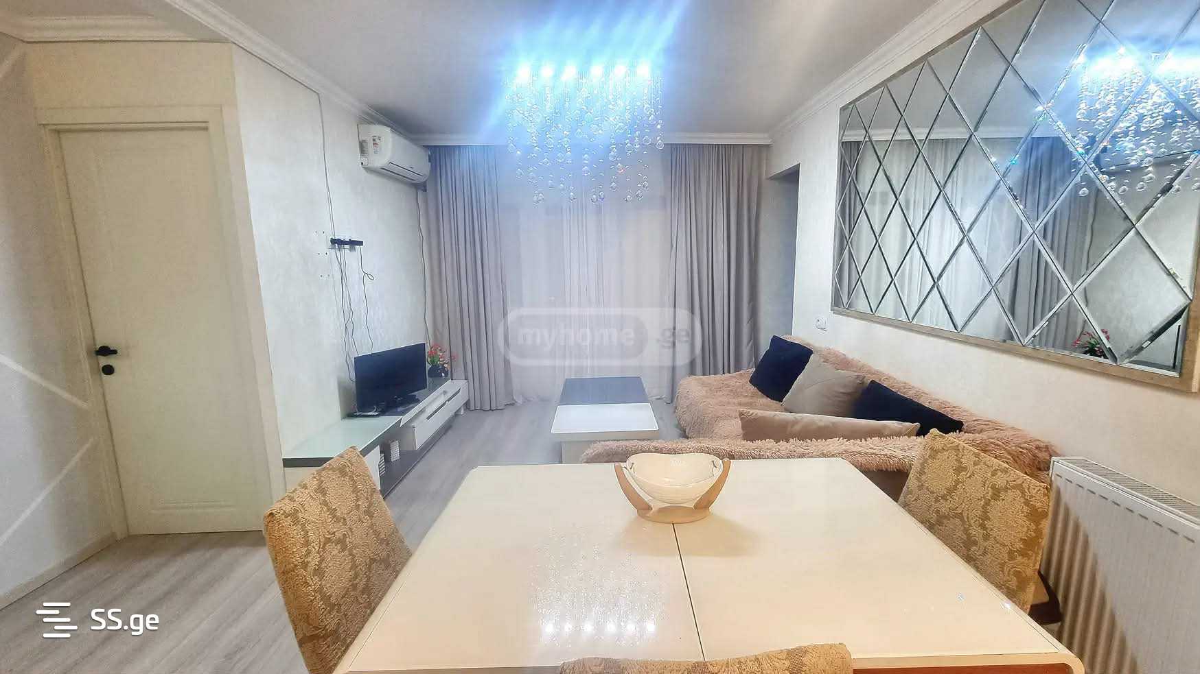 Комментарий: For rent: a newly renovated apartment with 3 bedrooms, a studio, and a large balcony, near Buki's Garden, at the intersection of Nakhtironi and Gamrekeli streets.