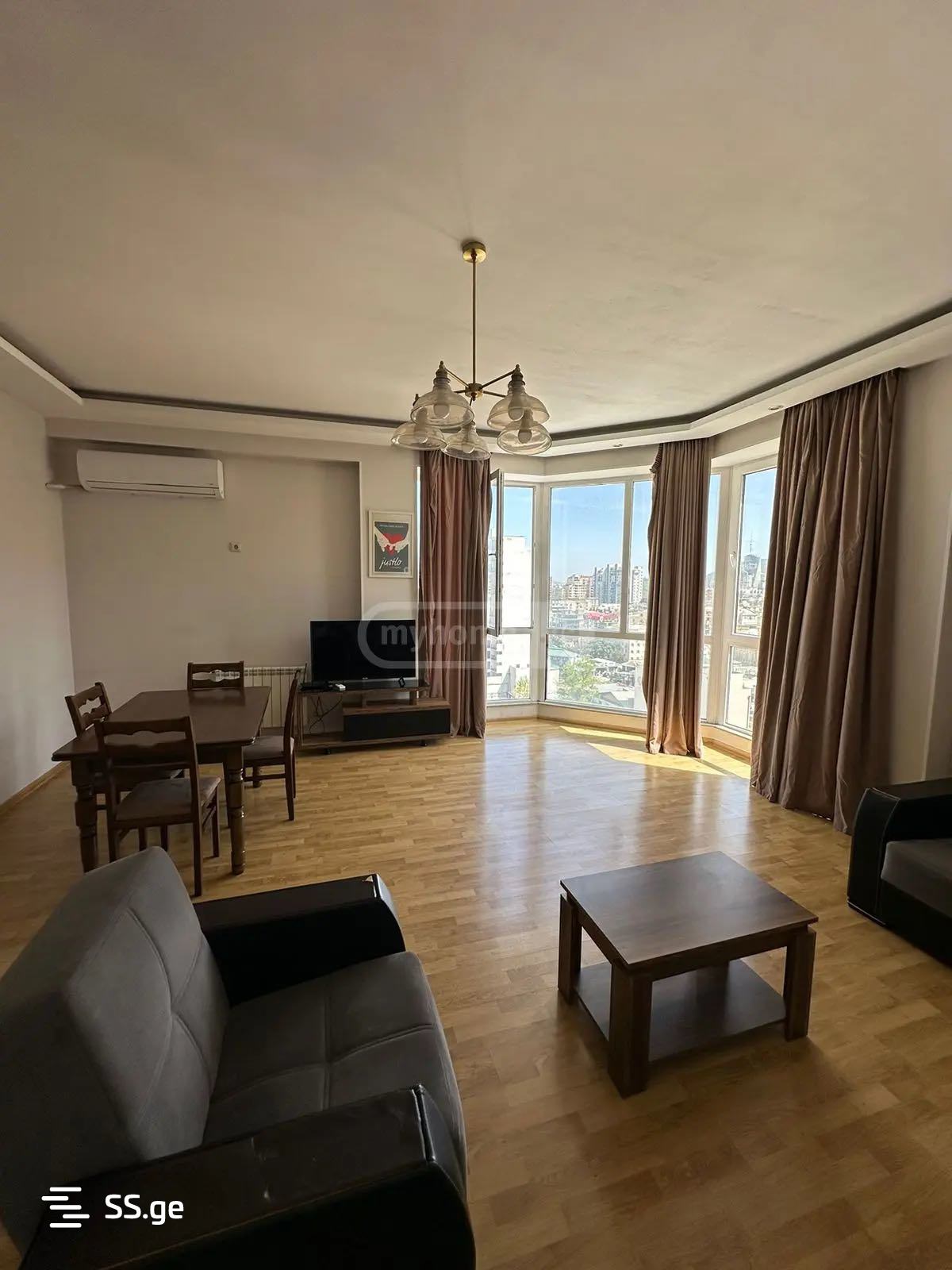 Комментарий: 3-room apartment for rent, on Vazha Pshavela Avenue, in the best location, behind the mall, 6-7 minutes from the metro. The apartment is renovated, fully furnished, with a large balcony and views of the city. The apartment has two bedrooms, two bathrooms, a large entrance, a large hall with beautiful panoramic windows, TV and furniture. First and last month with advance payment.