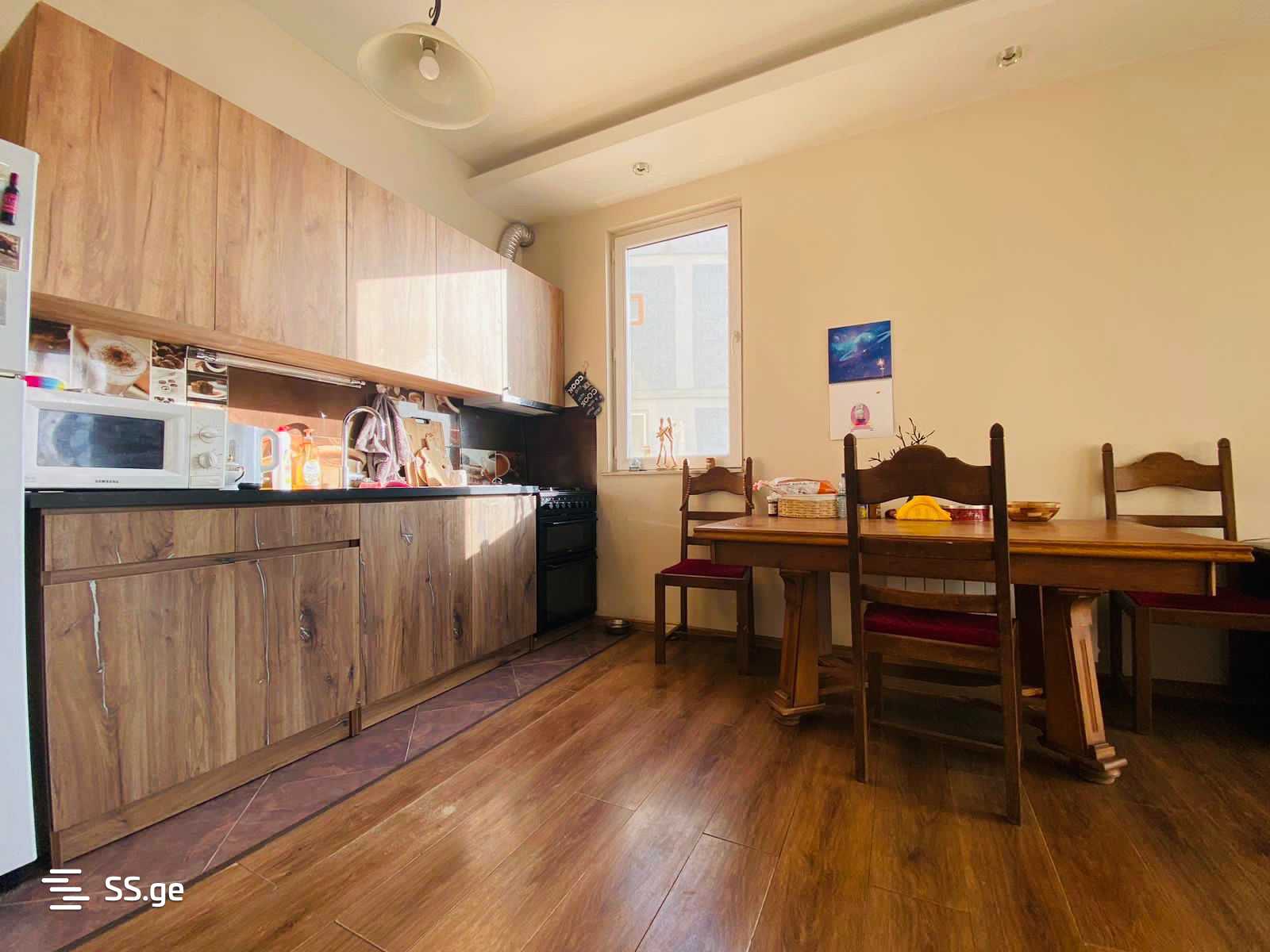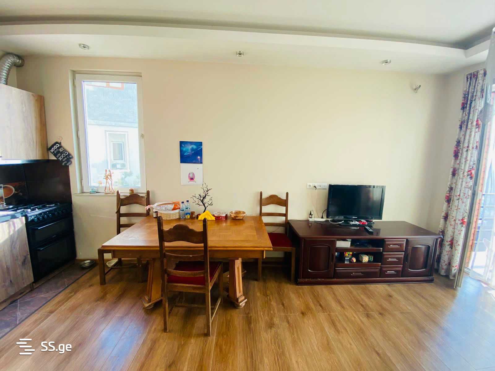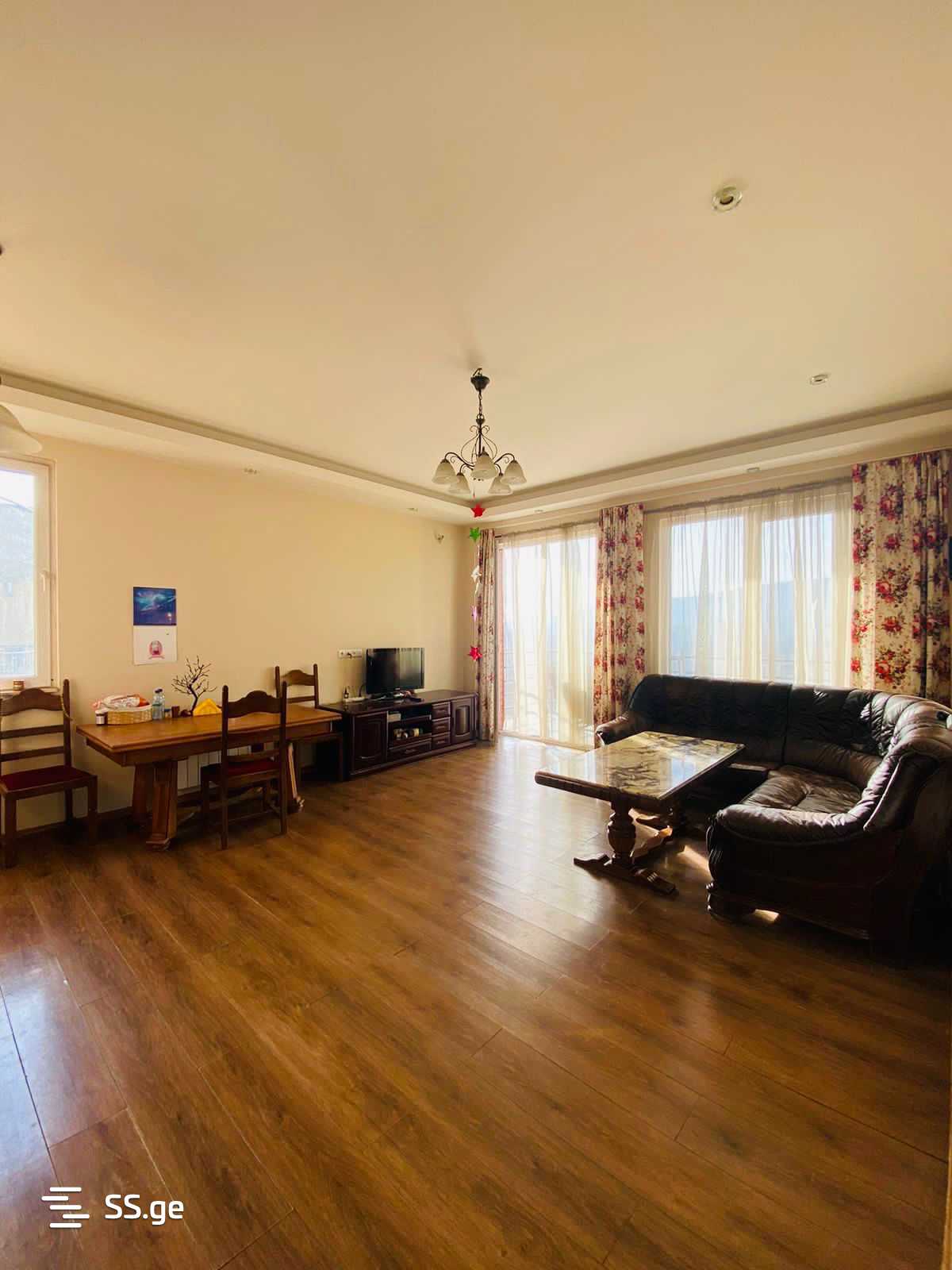 Сдается в строящемся доме на улице Бериташвили трехкомнатная квартира-студия с балконом, двумя спальнями, отоплением и кондиционером, мебелью и полной бытовой техникой (включая посудомоечную машину) с прекрасным видом с балкона. Оплатив сумму авансом за первый и последний месяц.