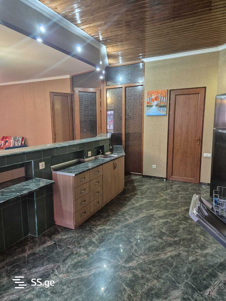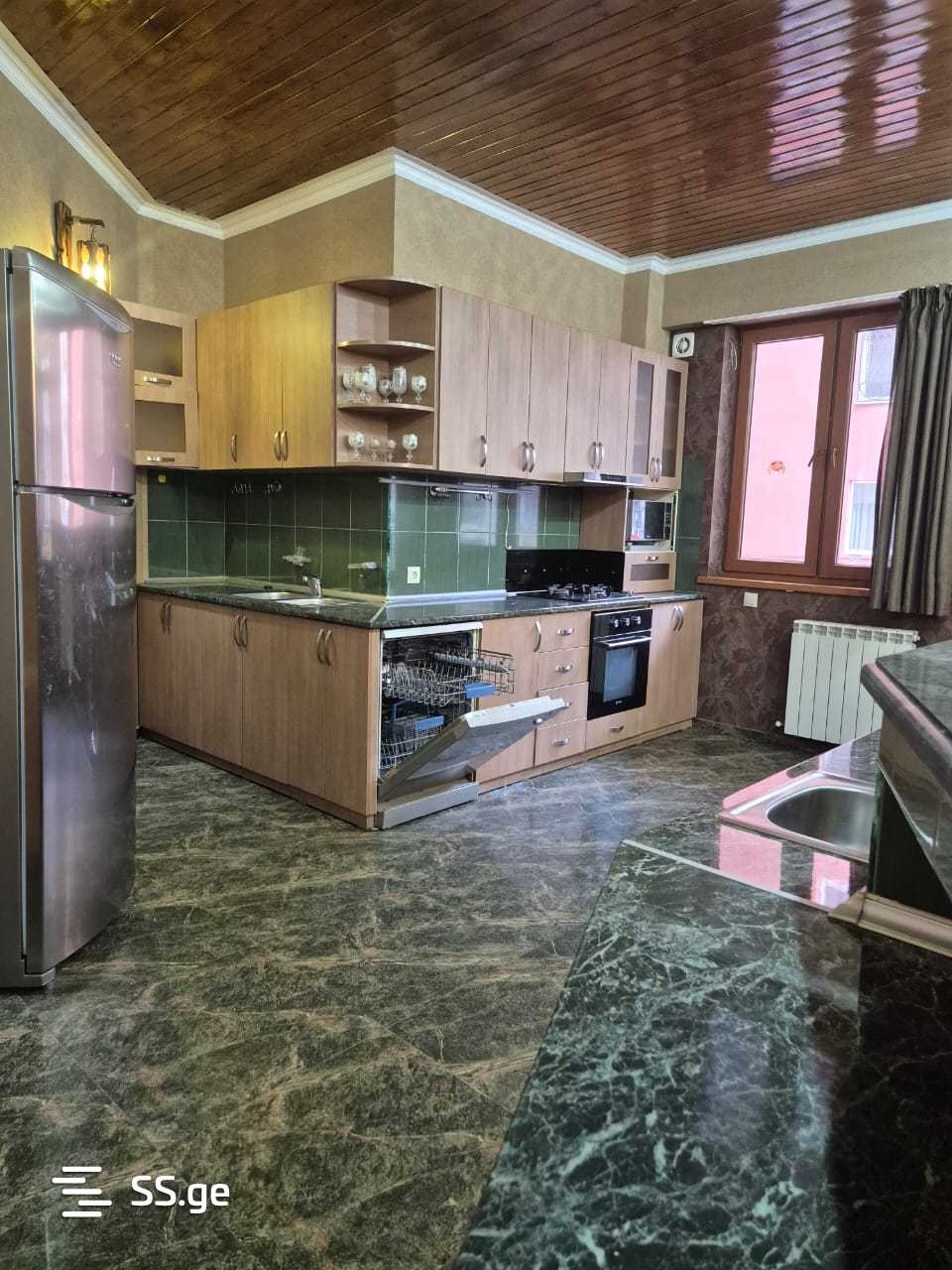Комментарий: ქირავდება სპორტის სასახლესთან სამოთახიანი ბინა. არის დიდი და ფართე ოთახები. ყველა საჭირო ავეჯით და ტექნიკით: კონდინციონერები, ცენტრალური გათბობის სისტემა, გაზქურა, ღუმელი, ჭურჭლის სარეცხი მანქანა, მაცივარი, მიკროტალღური, ჯაკუზი, საწოლები და სათავსოები.