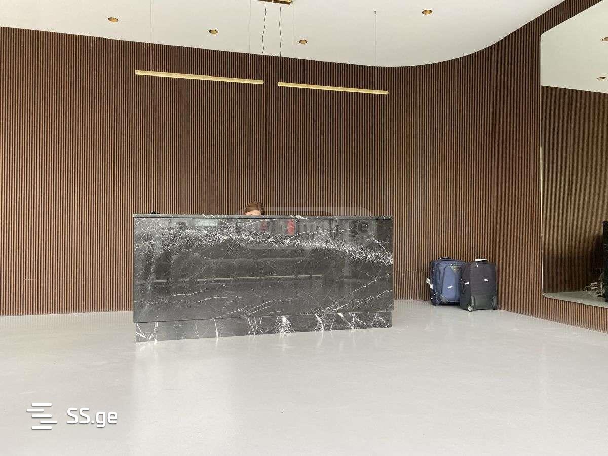 რომელსაც აქვს კარგი მისაღები, ყავს კონსიერჟი 24 საათიანი დაცვა და კამერები. ბინას აქვს საკუთარი საპარკინგე.