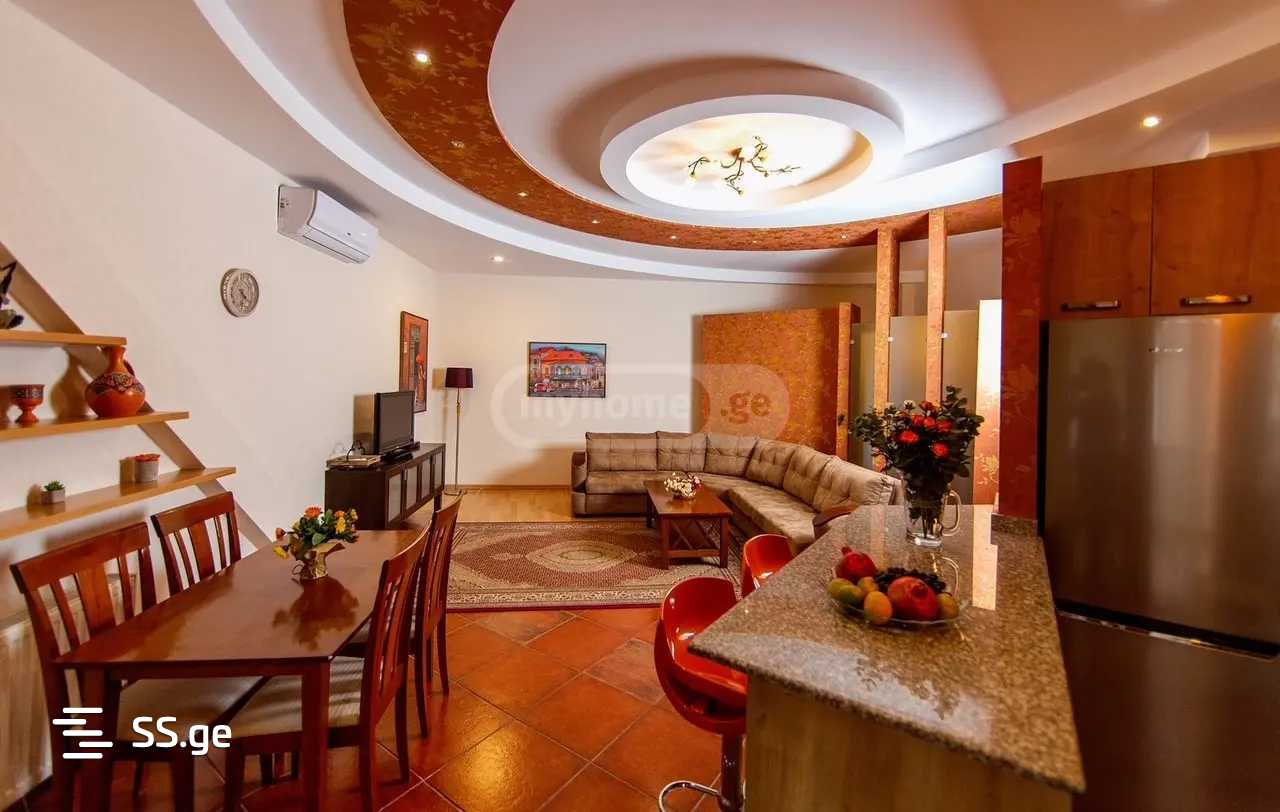 Комментарий: Rent 123 sq m apartment on Rustaveli Avenue (Rustaveli 20). Excellently renovated, with furniture, appliances. 2 bedrooms, study, studio, veranda. Two months in advance