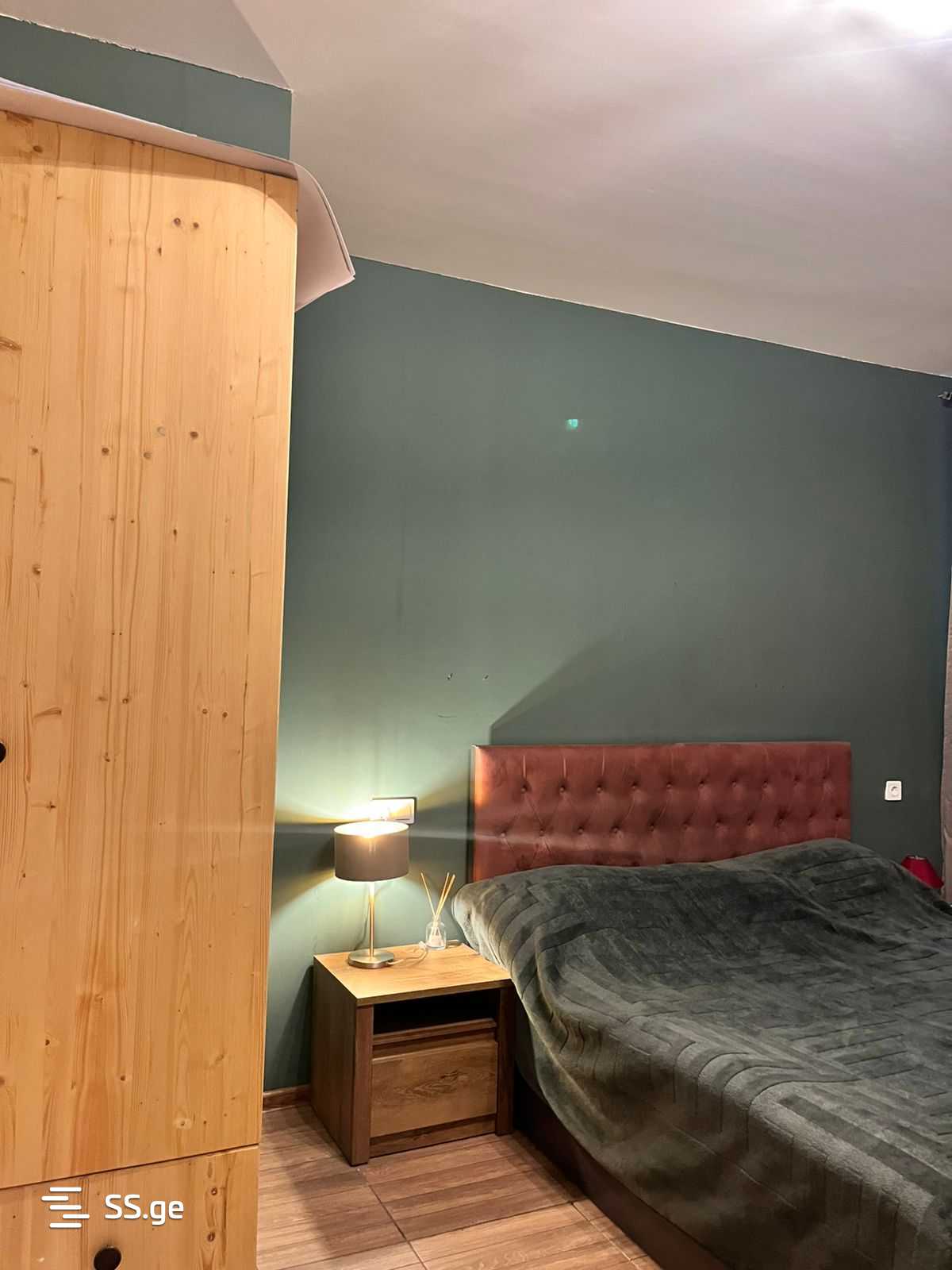 საძინებელი არის გამოყოფილი, არის პირველადი განათებით.