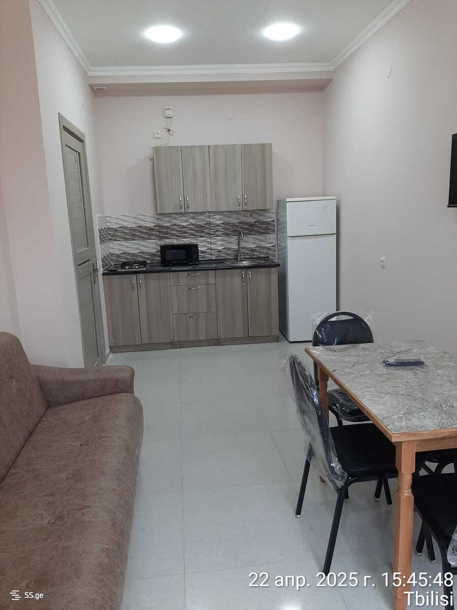Комментарий: For rent 200 meters from the Samgori metro station, on the 8th floor of a newly built building, 8(14), 2-room, renovated 40 sq. m. apartment, with furniture and appliances, kitchen cabinets, hot water, ring doors, heating, balcony, new elevator. Price 950 GEL, 2 months advance payment. Address: Onashvili 9
