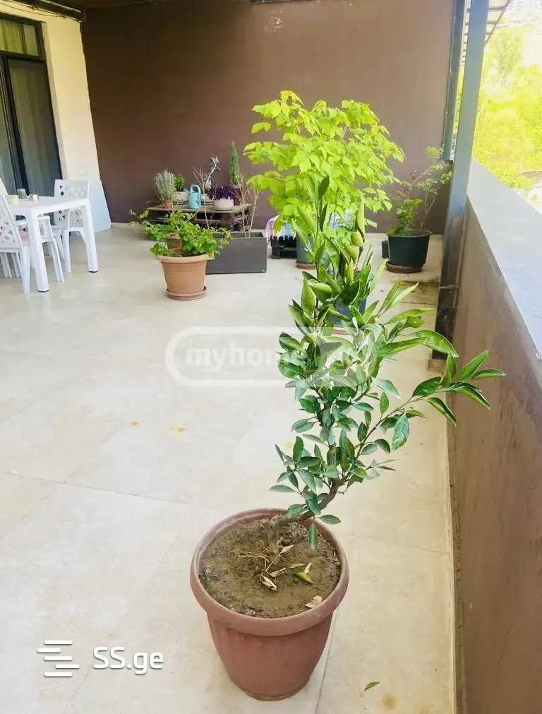 ბინის ფართი 107 მ², აქედან შიდა ფართი 63მ² და ვერანდა 44 მ², 2 საძინებელი და 1 სველი წერტილი.