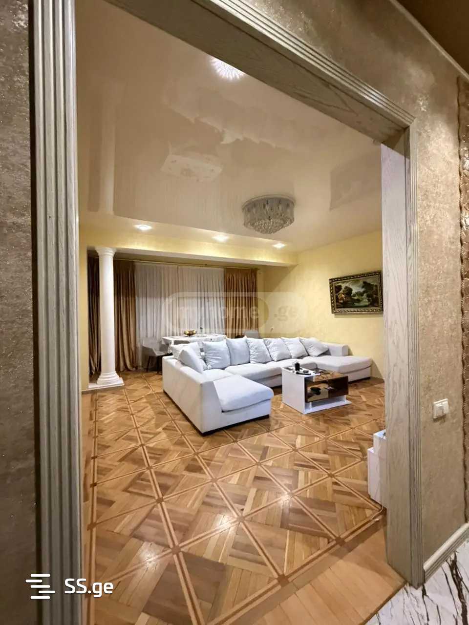 Сдается меблированная квартира на Сабуртало, на улице Кутателадзе, возле метро Дели, в строящемся доме, с новым ремонтом, 4 комнаты, 2 изолированные спальни, изолированная кухня, вся необходимая мебель и техника, центральное отопление, кондиционер, посудомоечная машина, 2 санузла, 3 балкона, гараж. Первый и последний месяц с предоплатой