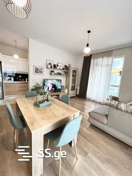Комментарий: For rent in Digomi, in the Green Diamond complex, a renovated 3-room apartment. With 2 bedrooms, 1 master bedroom, 2 balconies, overlooking the yard, furnished and equipped with appliances. The complex includes: swimming pools, a large yard, children's play areas, 24/7 security, shops, a gym, and a pharmacy.