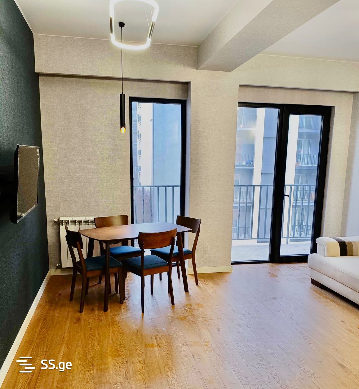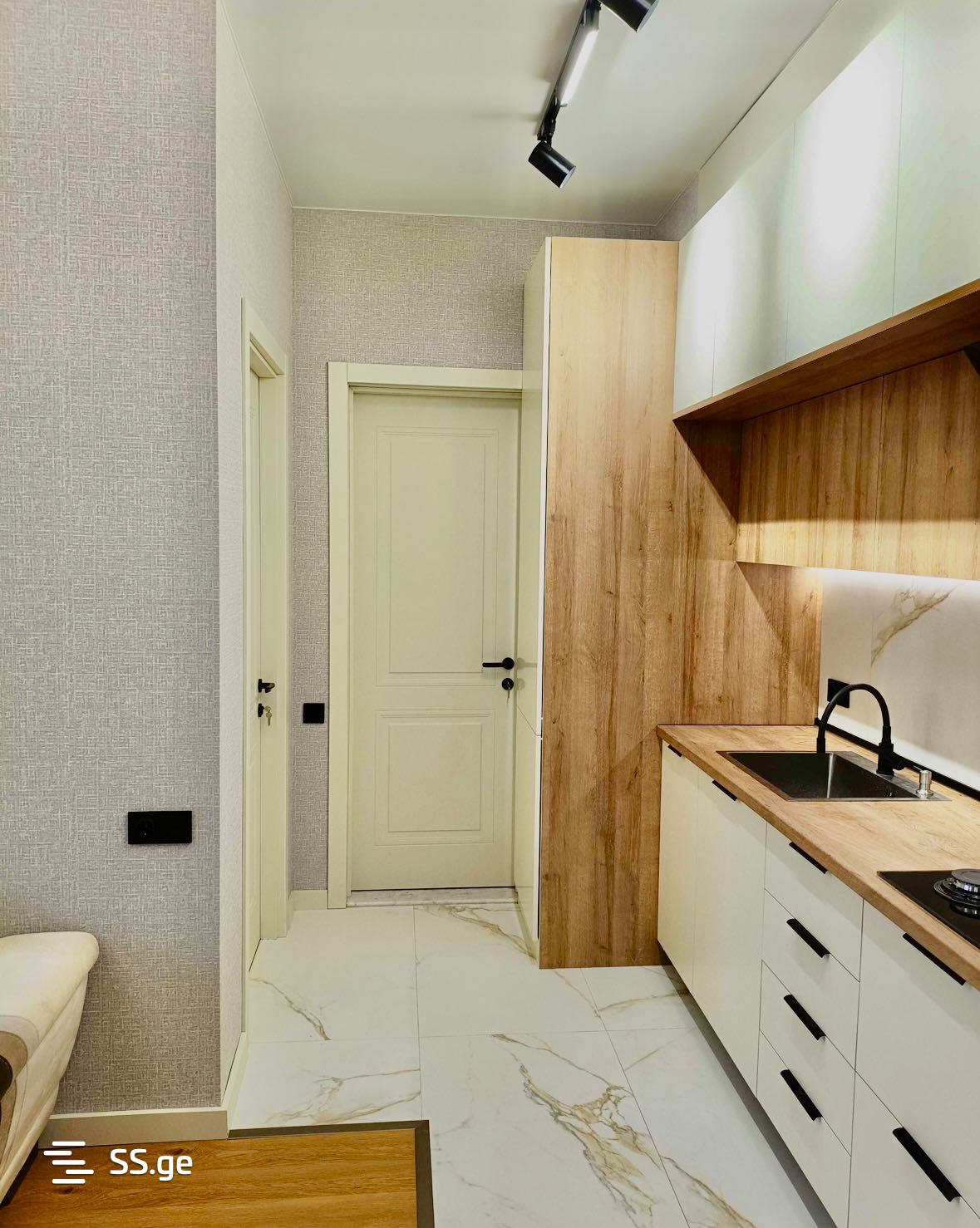 Комментарий: Uninhabited apartment on the 5th floor of a 7-story building, overlooking the street. Nearby are stores: Clean House, Nikora, Carrefour, Aversi Pharmacy, kindergartens. The building is equipped with a fire safety system and a gas detector.