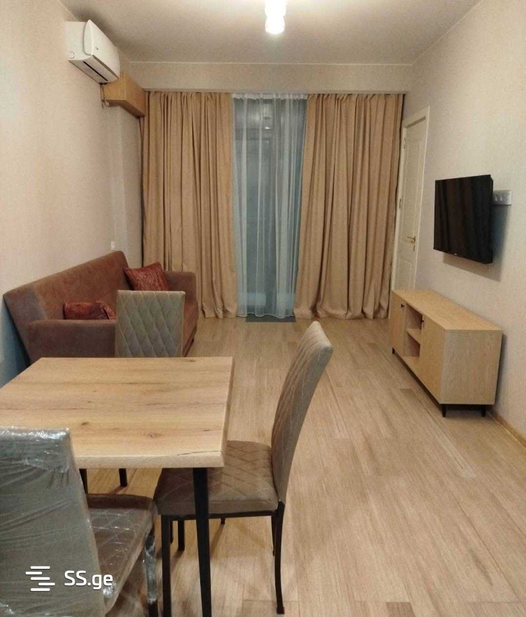 Комментарий: For rent near the Samgori metro station, next to Balavari buildings. A newly built 50 sq.m. two-room apartment. It has 1 bedroom. Balcony. Central heating. Furniture and appliances included. Floor: 8/17. Price: 1300 lari (paid for two months).