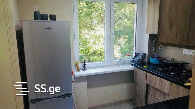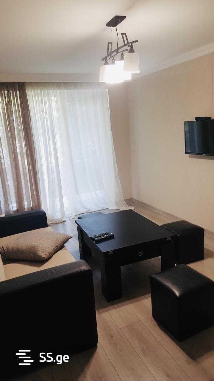 Комментарий: For rent: a 40 sq. m. 1-room renovated apartment on the 3rd (4th) floor in the third quarter of Vazha-Pshavela, 3 minutes walk from Vazha-Pshavela metro station. It has a balcony, and the apartment is furnished with all necessary furniture. In addition to the folding sofa in the room, there is also a bed that is not shown in the picture. Price: 1100 GEL with advance payment for two months (first and twelfth).
